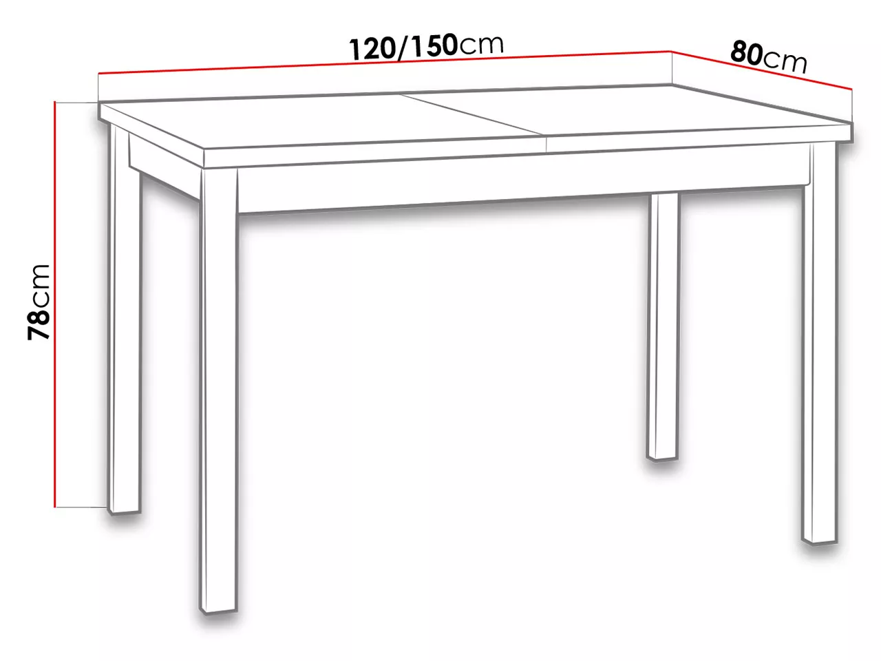 Pokud oceňujete jednoduchý design, nekonvenční řešení a lehce industriální strohost, je pro vás kuchyňský stůl ELISEK 1 tím správným výběrem. V případě potřeby lze stůl rozložit do šířky 150 cm. Stůl je vybaven masivními nohami, což přidává pevnost a stabilitu.