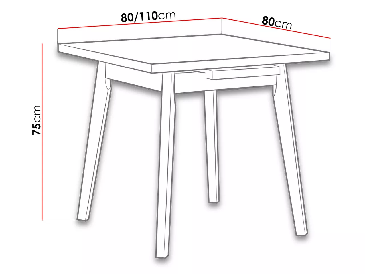 Jídelní stůl AMES 2 je díky svým kompaktním rozměrům 80x80 cm vhodný i do menších prostor a garsonek, jelikož nezabírá mnoho místa. V případě potřeby lze stůl rozložit do šířky 110 cm. Stůl je vybaven masivními nohami, což přidává pevnost a stabilitu.