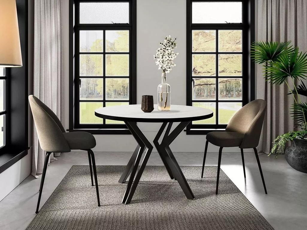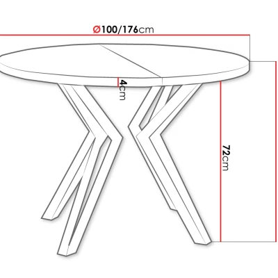 Kulatý jídelní stůl HILLSBORO je díky svým kompaktním rozměrům vhodný i do menších prostor a garsonek, jelikož nezabírá mnoho místa. V případě potřeby lze stůl jednoduše a rychle rozložit do šířky 176 cm.
