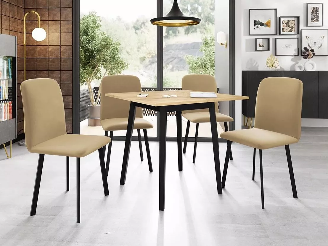 Malý jídelní rozkládací stůl 85x85 cm BAKARA - dub kraft zlatý / černý