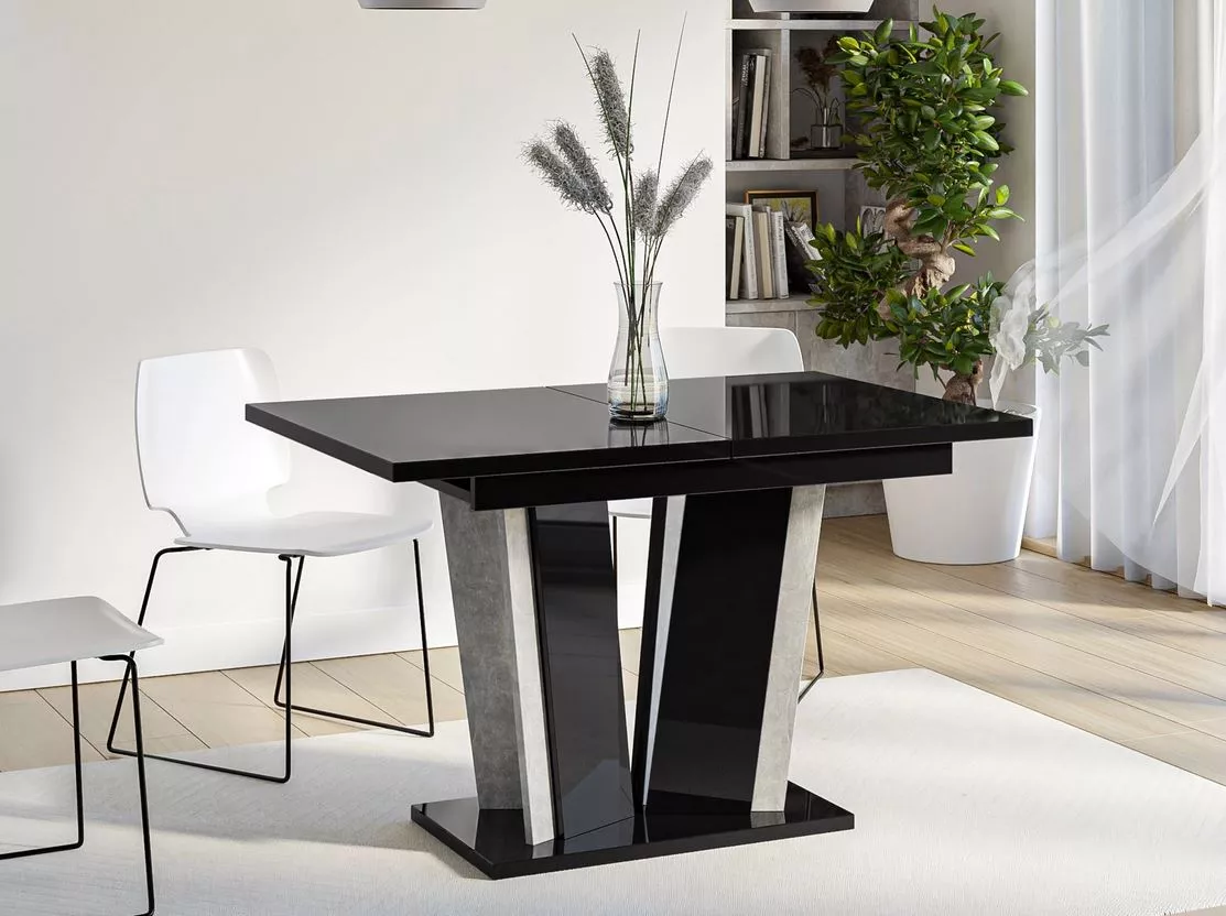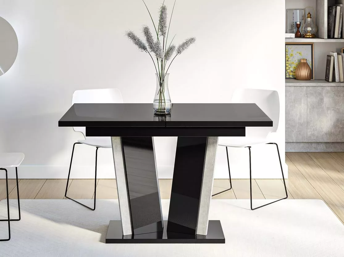 Rozkládací stůl do kuchyně 120x80 cm FERDEK 2 - beton / lesklý černý