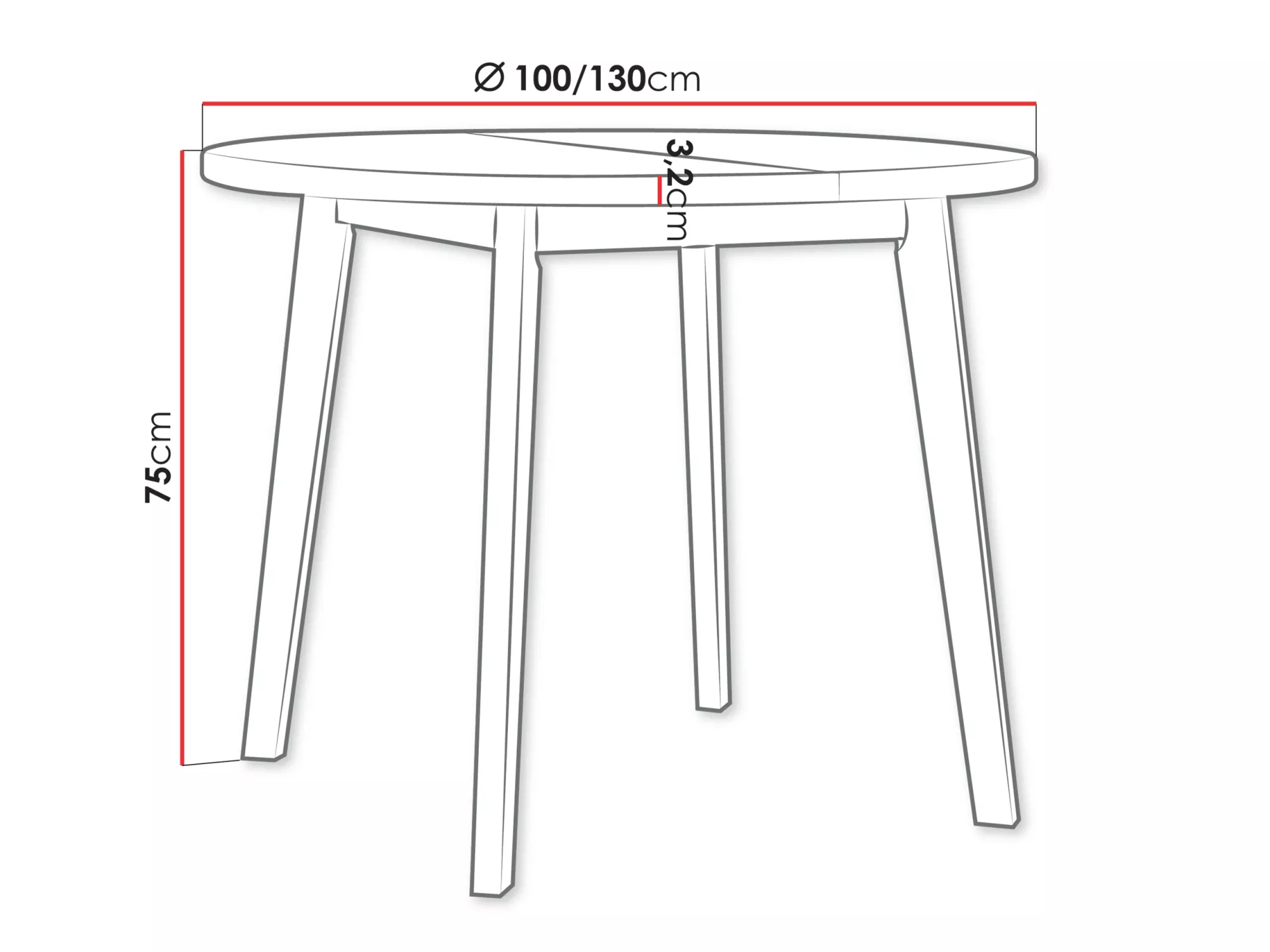 Kulatý malý rozkládací stůl do jídelny AMES je díky svým kompaktním rozměrům vhodný i do menších prostor a garsonek, jelikož nezabírá mnoho místa. V případě potřeby lze stůl rozložit do šířky 130 cm. Stůl je vybaven masivními nohami, což přidává pevnost a stabilitu.