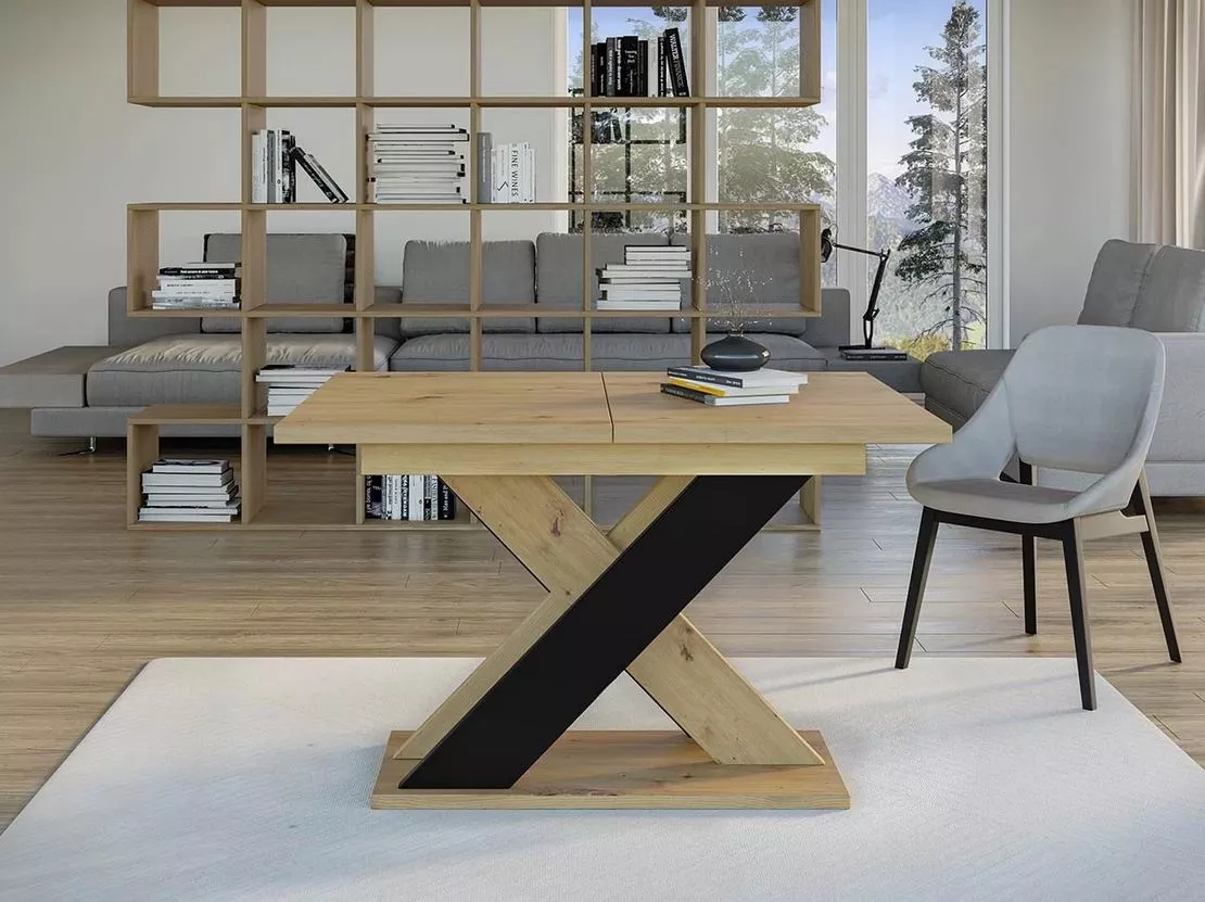 Rozkládací stůl do jídelny 120x90 cm FIGOL - dub artisan / černý