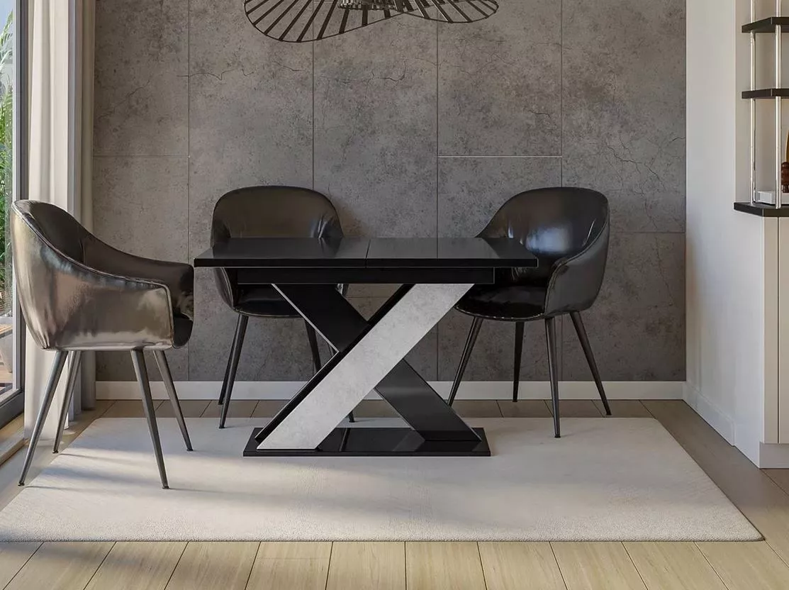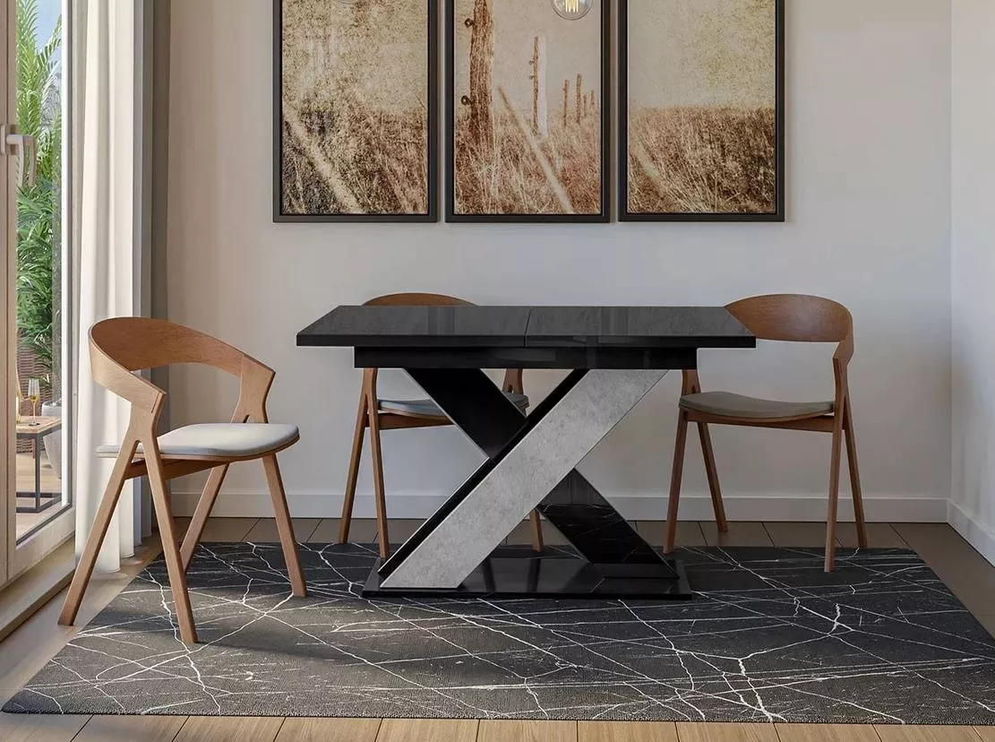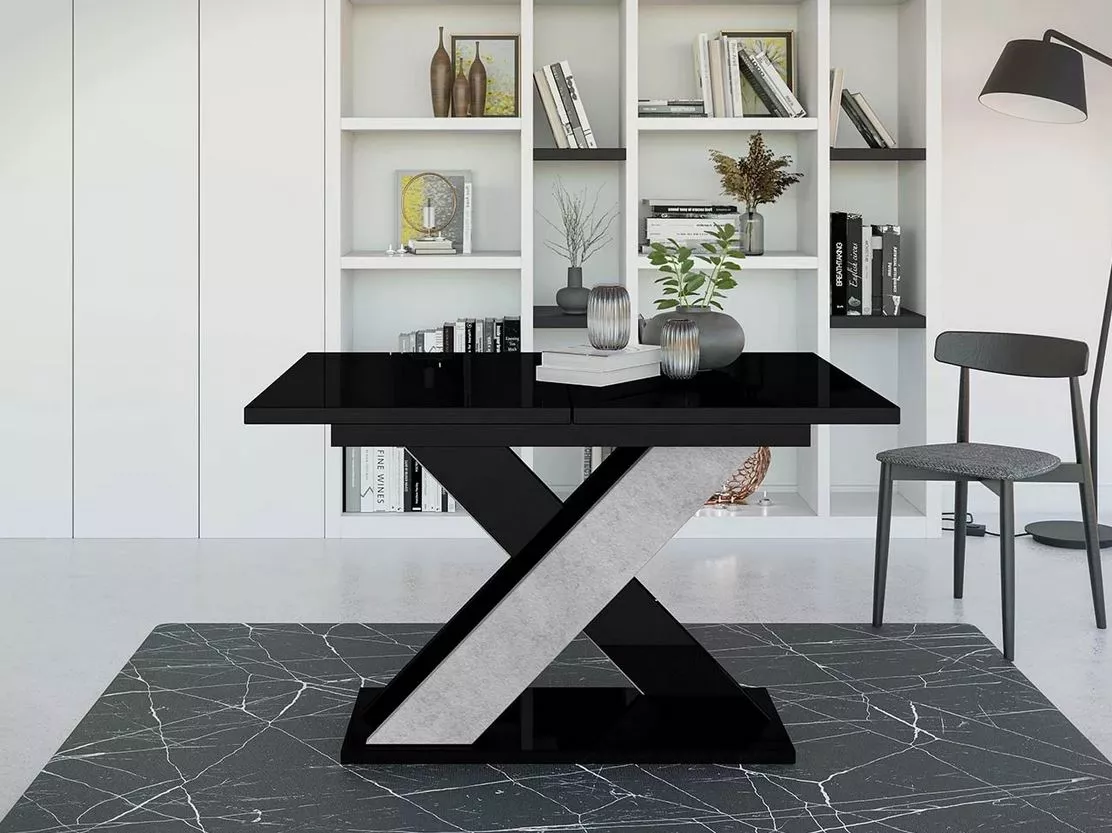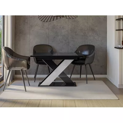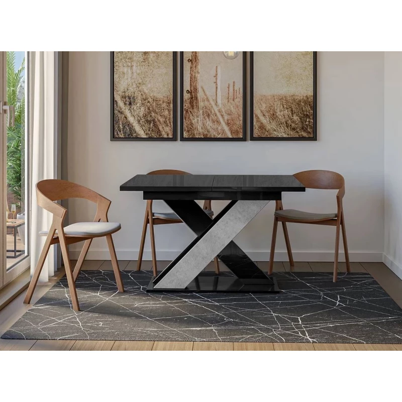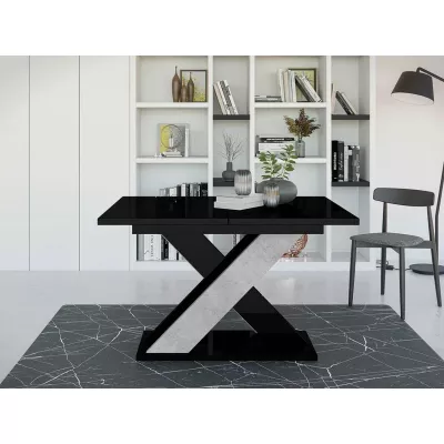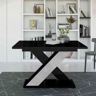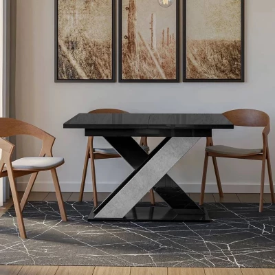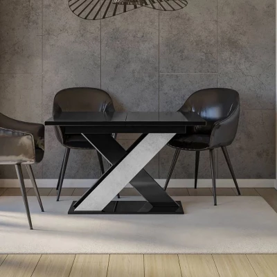 Rozkládací stůl do jídelny 120x90 cm FIGOL - beton / lesklý černý