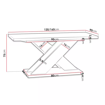 Působivý stůl do jídelny v designovém stylu pro větší estetiku i praktičnost. Elegantní nohy se zužují do tvaru písmene X, což dodává nábytku jedinečný vzhled. Rozložitelný do šířky 160 cm, vhodný pro rodinná setkání až pro 6 osob.