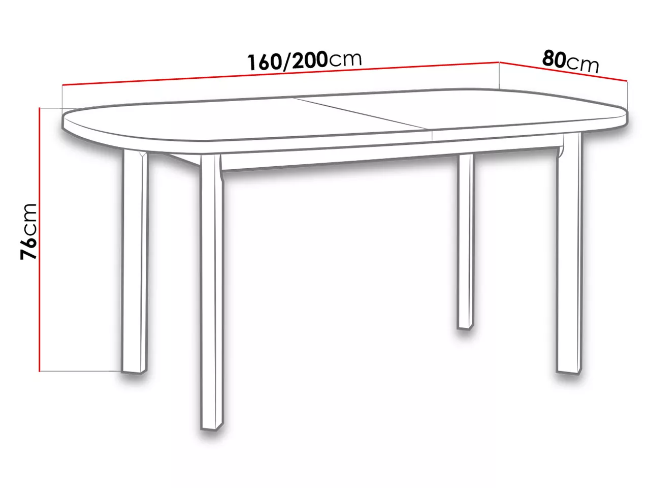 Rozkládací jídelní stůl BANGS je tradiční model s mírně zaoblenými hranami. Oválný tvar horní desky dodává stolu lehký vzhled. Standardní délka stolu je 160 cm, přičemž v rozloženém stavu délka činí 200 cm, což poskytuje místo k sezení až pro 7 osob.