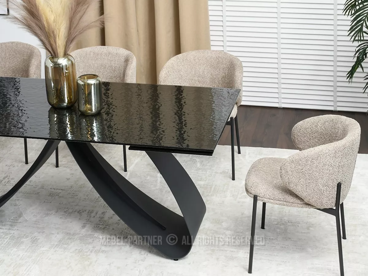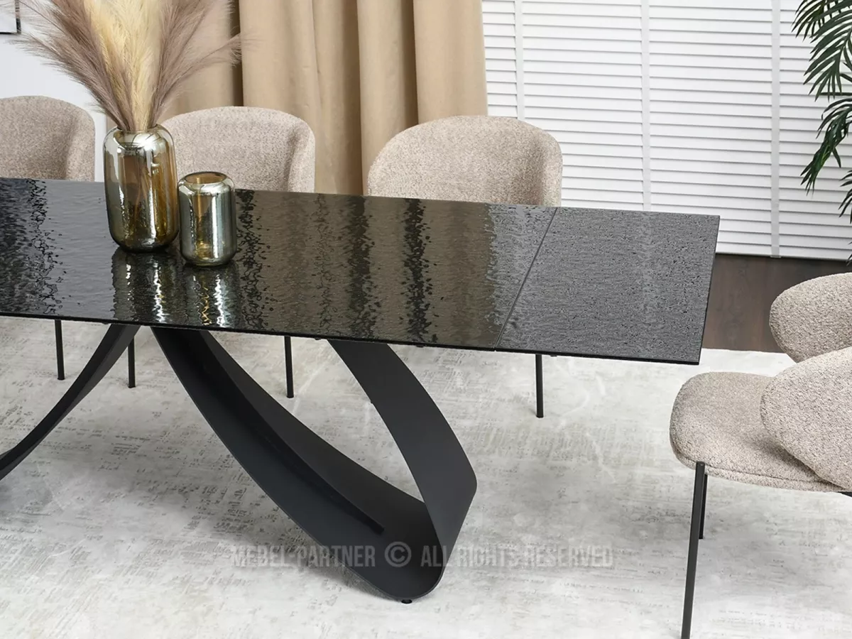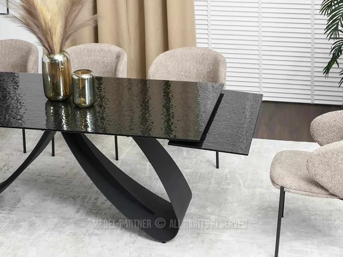 Rozkládací jídelní stůl 180(260) EVONY se perfektně hodí do minimalistických a moderních prostor. Stůl je vybaven bezpečnostními nožičkami, které zdůrazňují vysokou kvalitu konstrukce.
