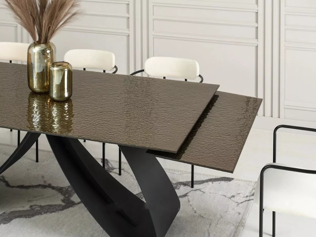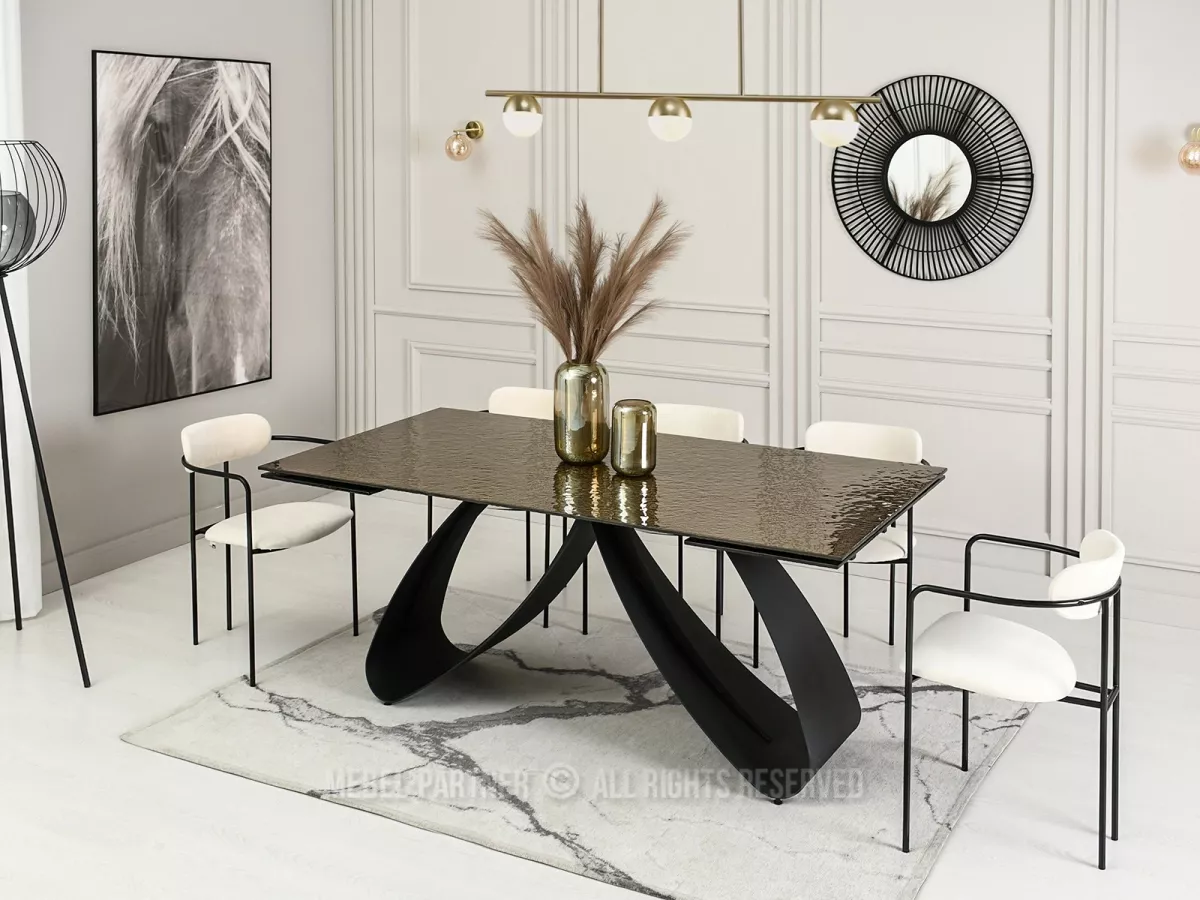 Rozkládací jídelní stůl 180(260) EVONY se perfektně hodí do minimalistických a moderních prostor. Stůl je vybaven bezpečnostními nožičkami, které zdůrazňují vysokou kvalitu konstrukce.
