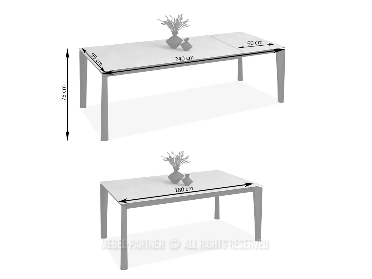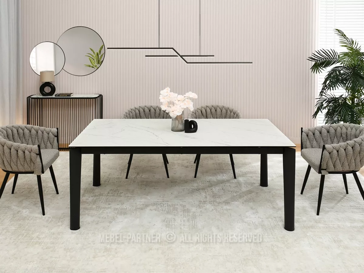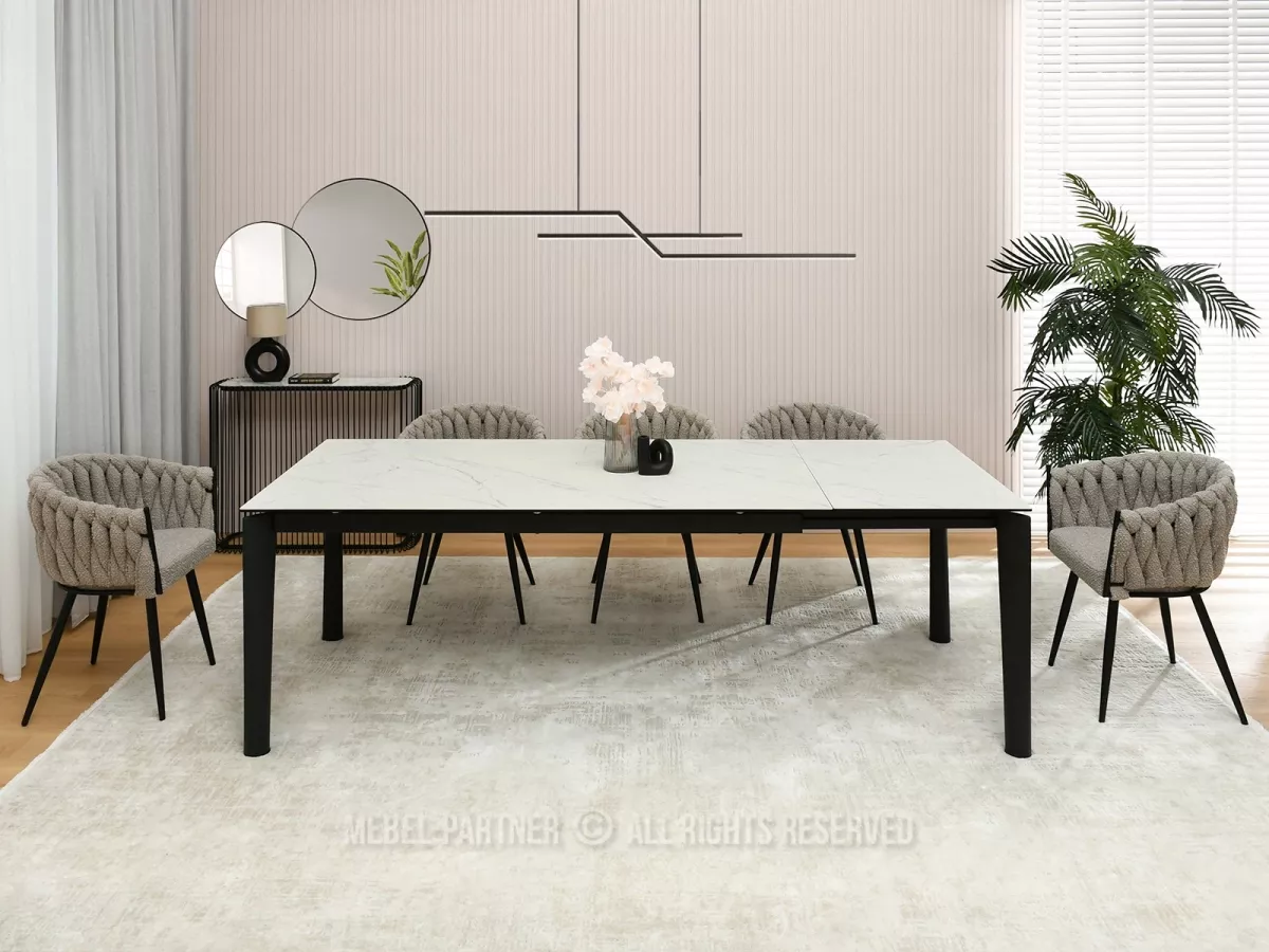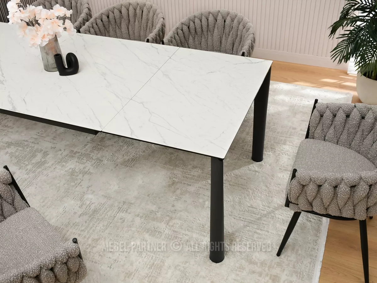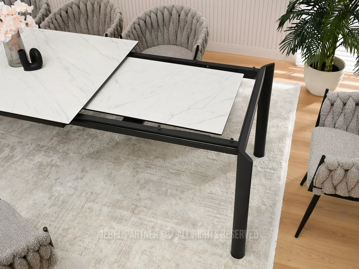 Rozkládací jídelní stůl 180(240) WAHI s deskou z keramiky a tvrzeného skla zaujme nejen svým vzhledem, který věrně imituje vzor bíléjo mramoru, ale také mimořádnou životností a odolností. Díky snadnému rozkládacímu mechanismu se stůl snadno přizpůsobí počtu hostů a zaručí pohodlí a prostor pro každého.