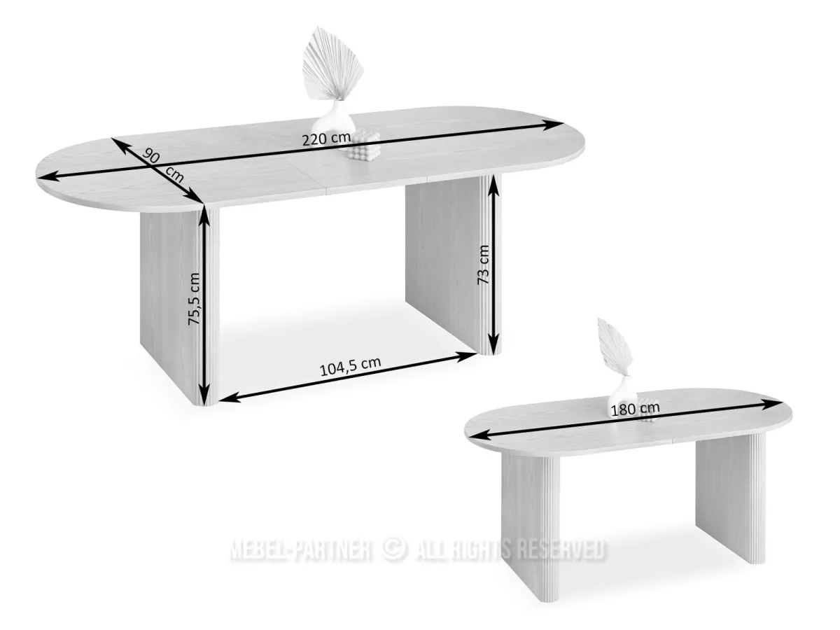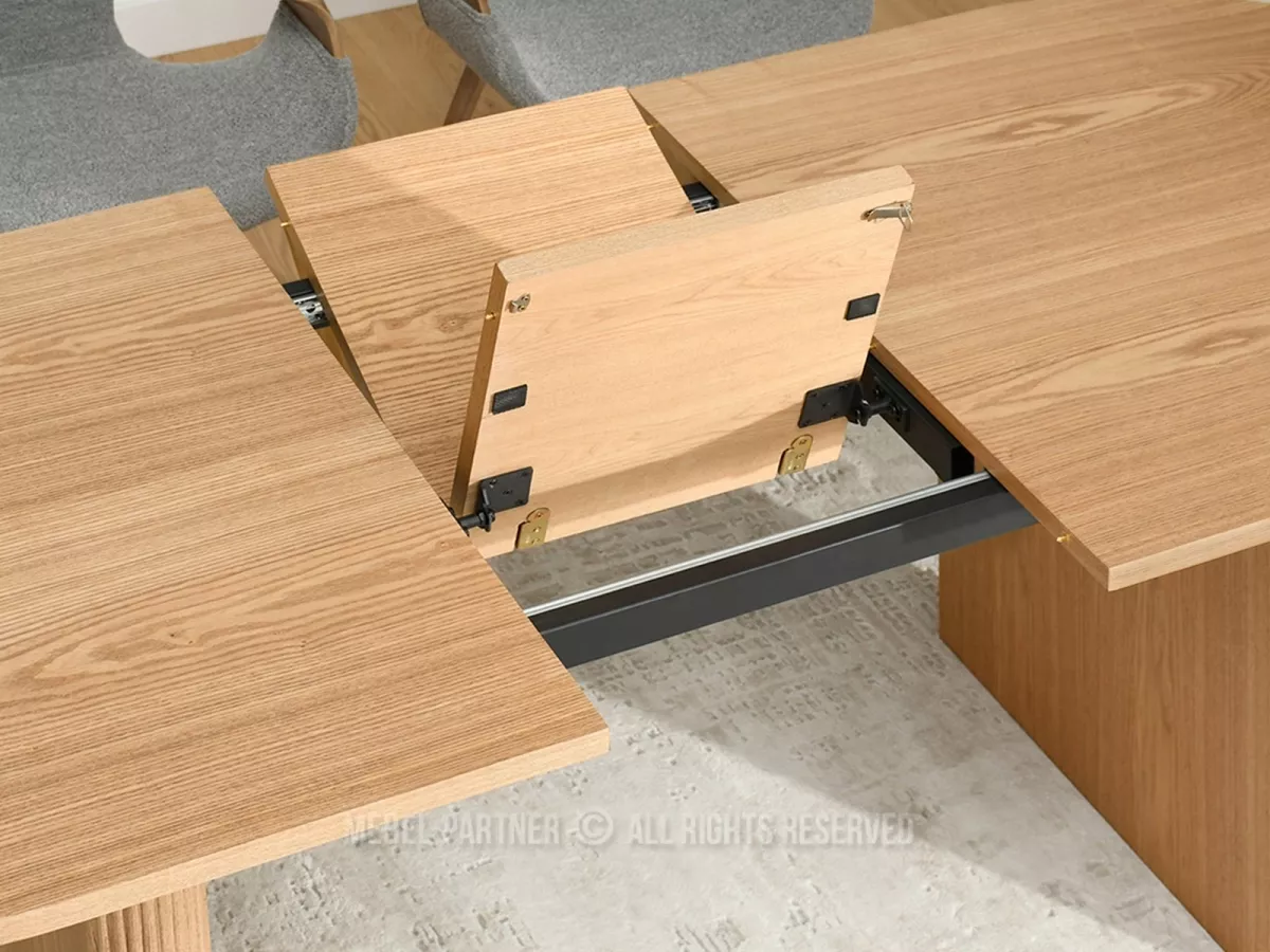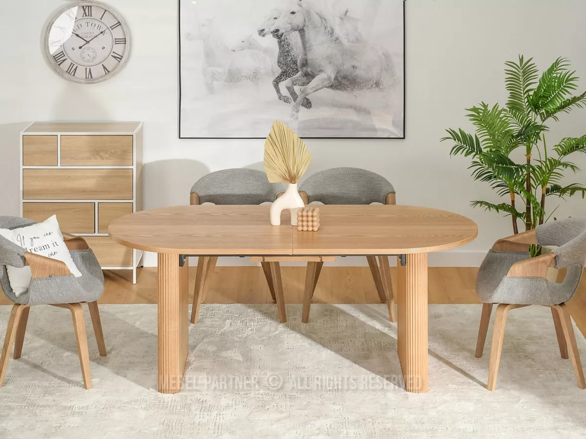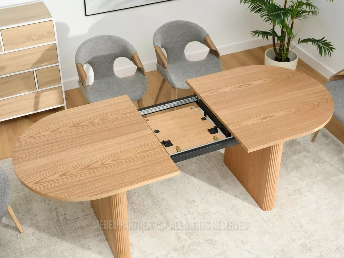 Rozkládací jídelní stůl CENDRY je charakteristický svými drážkovanými nohami. Vyznačuje se snadným systémem rozkládání, kdy pod deskou stolu je praktická vložka, kterou lze snadno vyjmout, umístit a zvětšit tak plochu stolu.