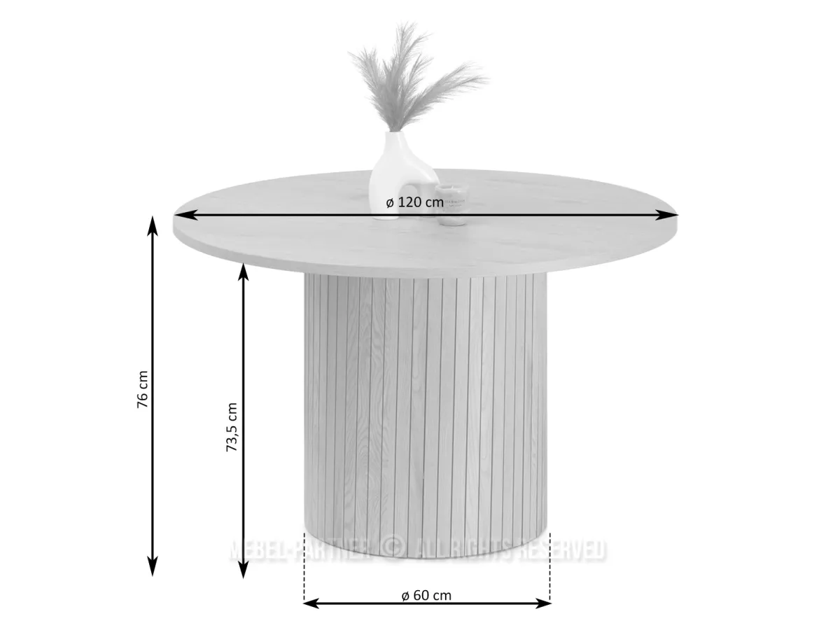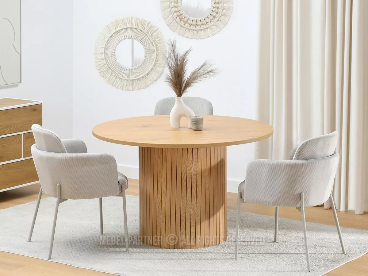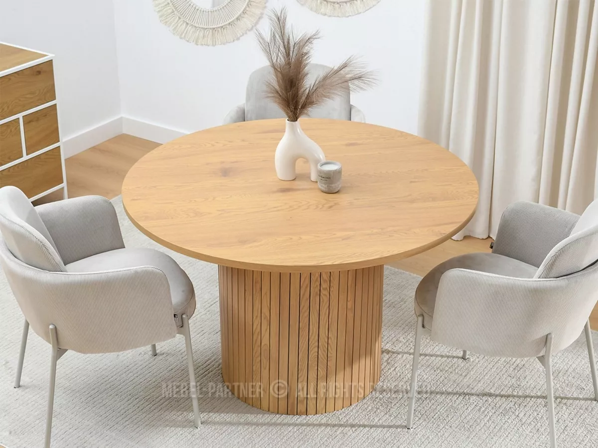 Kulatý jídelní stůl 120 HRISTO je elegantní a funkční kus nábytku, který skvěle poslouží v obývacím pokoji, kanceláři nebo jídelně. Jeho moderní design a solidní zpracování zajišťují nejen estetický vzhled, ale také odolnost a komfort používání.