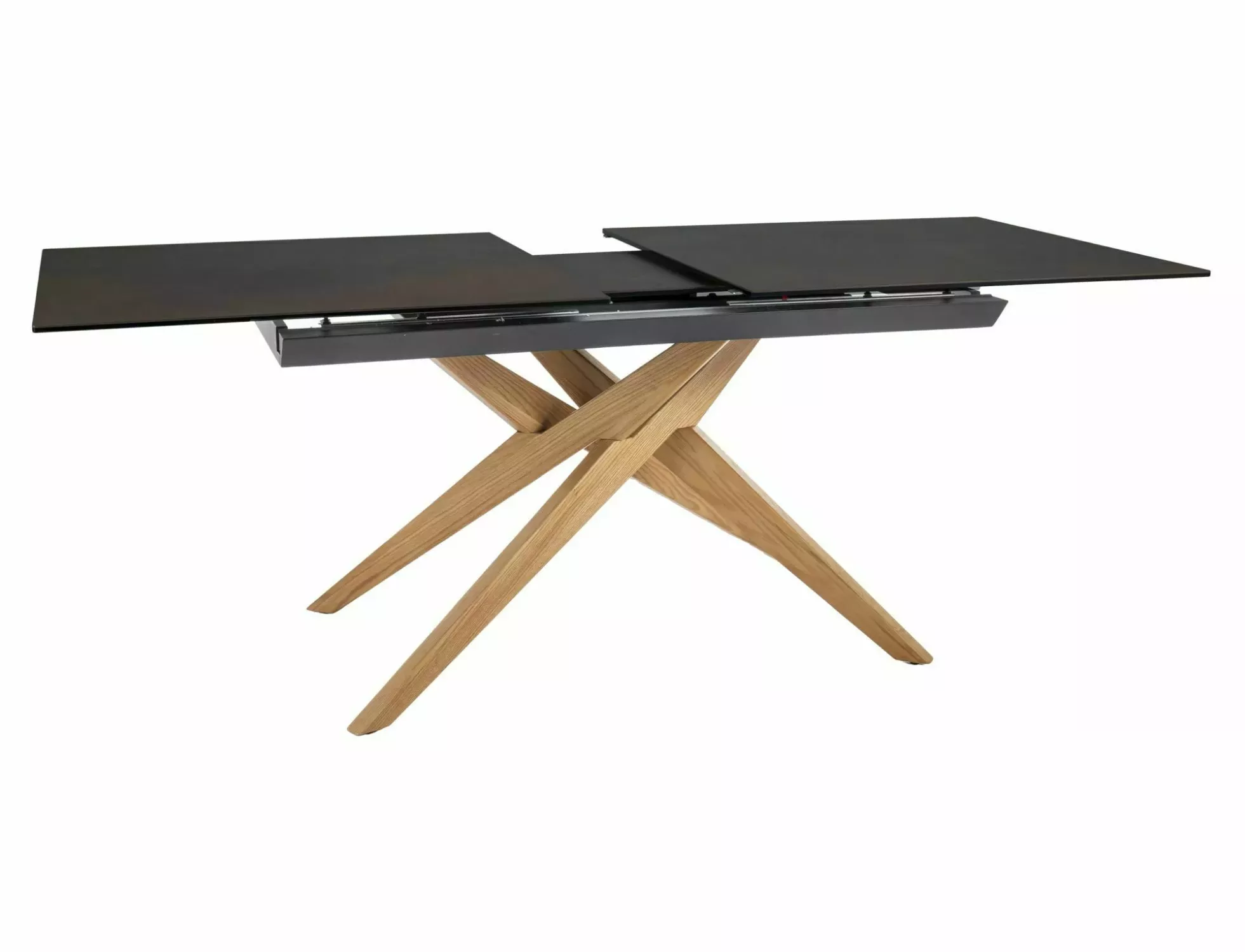 Rozkládací jídelní stůl AHMED je designový stůl s atraktivním vhledem. Deska stolu vyrobena z keramiky je mimořádně odolná a snadno se udržuje v čistotě. Zvláštní pozornost poutá dřevěná konstrukce a zároveň stůl činí odolným a stabilním během používání.