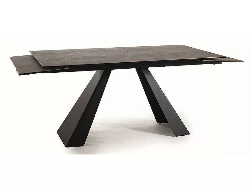 Rozkládací jídelní stůl GEDEON je zajímavou kombinací skla a keramiky, která elegantně imituje dřevo. Nohy mají jednoduchý a moderní tvar, jsou vyrobeny z kovu. Stůl má snadný a pohodlný skládací mechanismus.