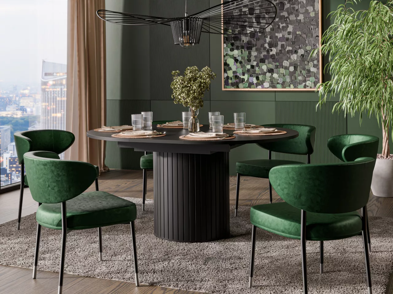 Rozkládací jídelní stůl APEX zaujme svou charakteristickou základnou zdobenou lamelami. Stůl vnese do každé jídelny nebo kuchyně nádech elegance a modernosti. Stůl je po rozložení vhodný pro 6 osob.