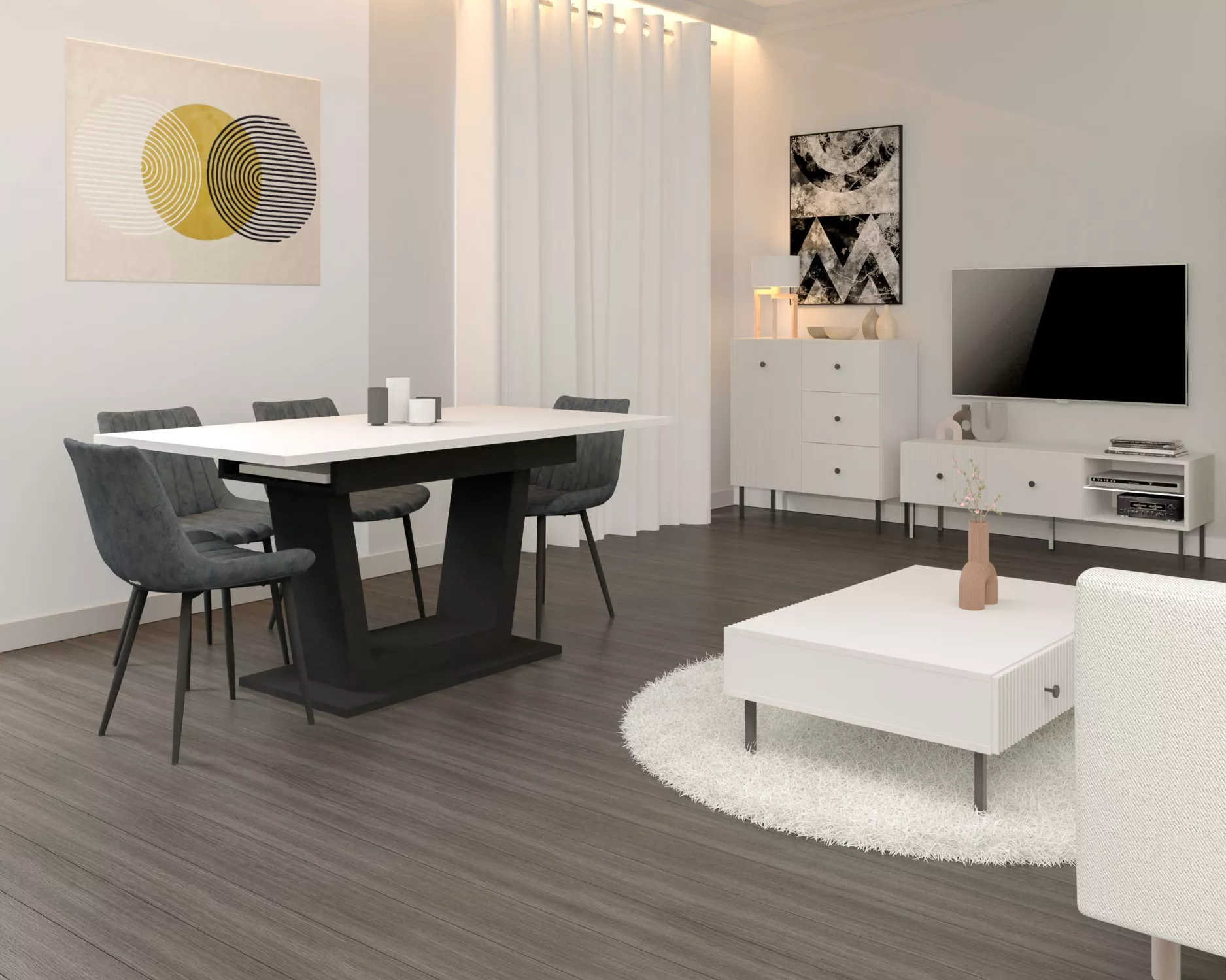 Rozkládací jídelní stůl ZANDER svým zpracováním zapadne do každé moderní kuchyně, jídelny nebo obývacího pokoje. Po rozložení je stůl vhodný až pro 7 osob.