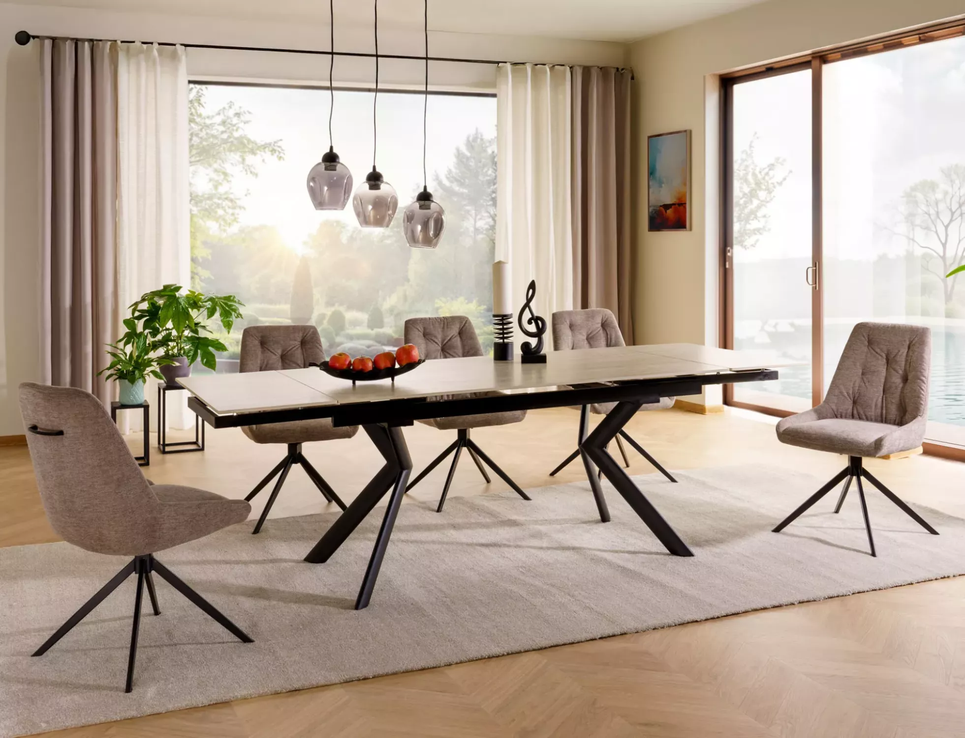 Rozkládací jídelní stůl RODMAN zaujme svým originálním vzhledem. Deska stolu je vyrobena z vysoce kvalitní keramiky, odolné proti poškrábání. Kovová základna se skládá ze dvou párů mírně klenutých nohou, které poskytují dodatečnou stabilitu i při maximálním zatížení.
