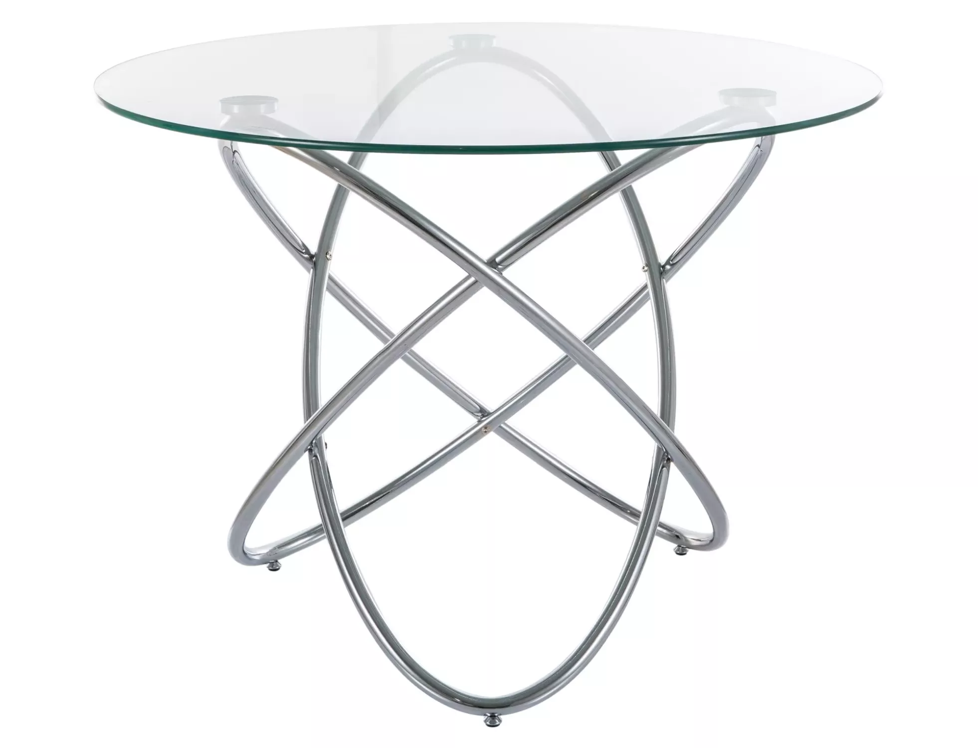 Designový skleněný stůl ORLAN zaujme svým originálním vzhledem. Stabilní ocelová podnož se skládá z tenkých nohou, které se protínají v geometrickém vzoru, což stolu dodává lehkost a nadčasovou eleganci.