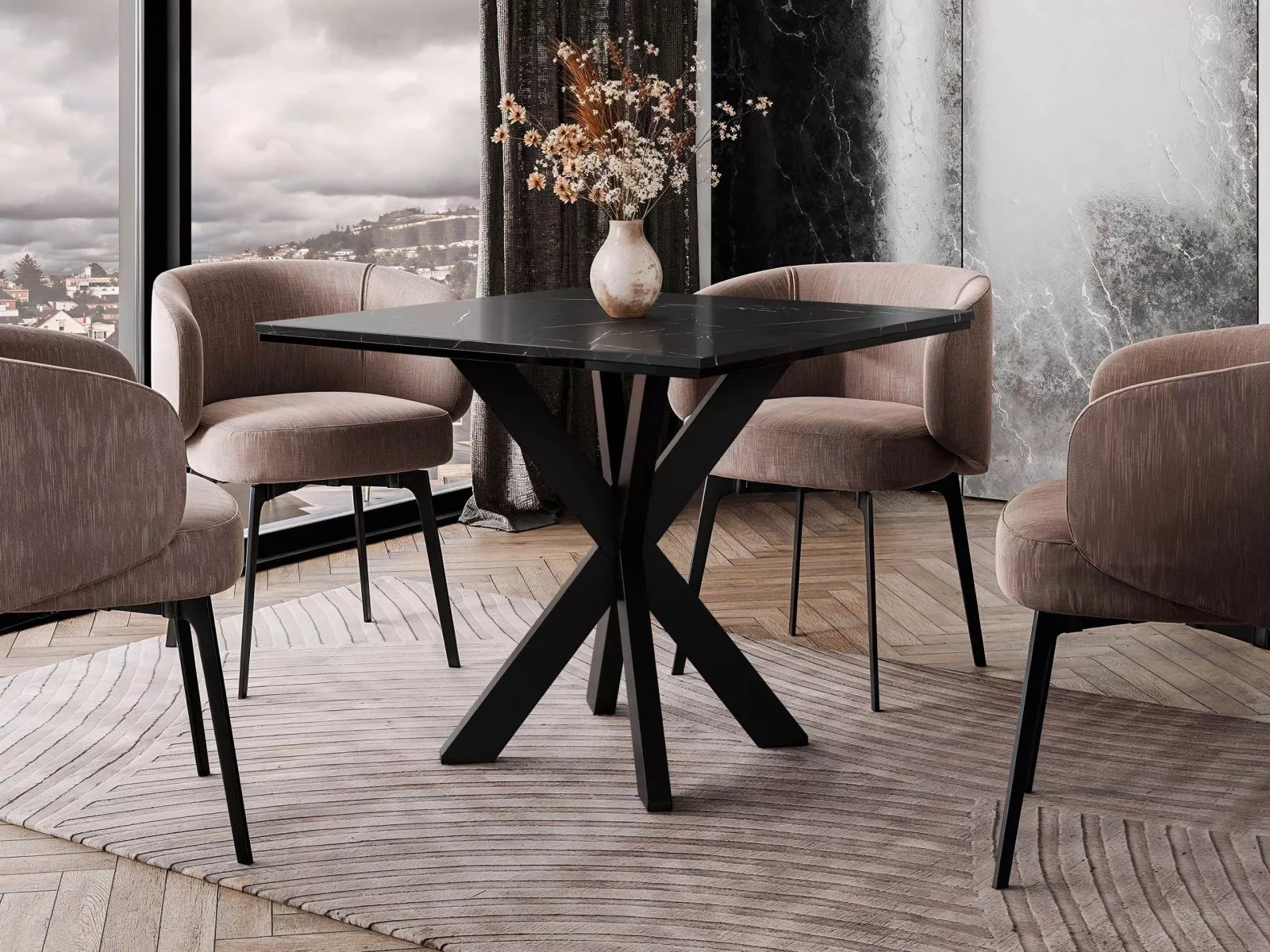 Vytvořte si příjemné místo pro každodenní chvíle s jídelním stolem MUKILTEO. Kompaktní rozměry umožní snadné umístění i v menším prostoru, aniž by ztratil na eleganci. Geometricky tvarované nohy dodávají stolu osobitý charakter a lehce zvýrazní celý interiér. Skvěle zapadne do moderního, designového i industriálního stylu a stane se oblíbeným místem pro ranní kávu i večerní posezení.