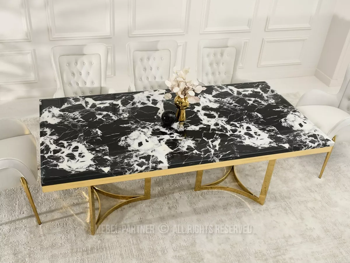 Stylový jídelní stůl FARIS - černobílý mramor / zlatý