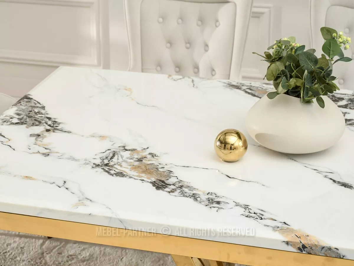 Luxusní jídelní stůl HALIM - bílý mramor / zlatý