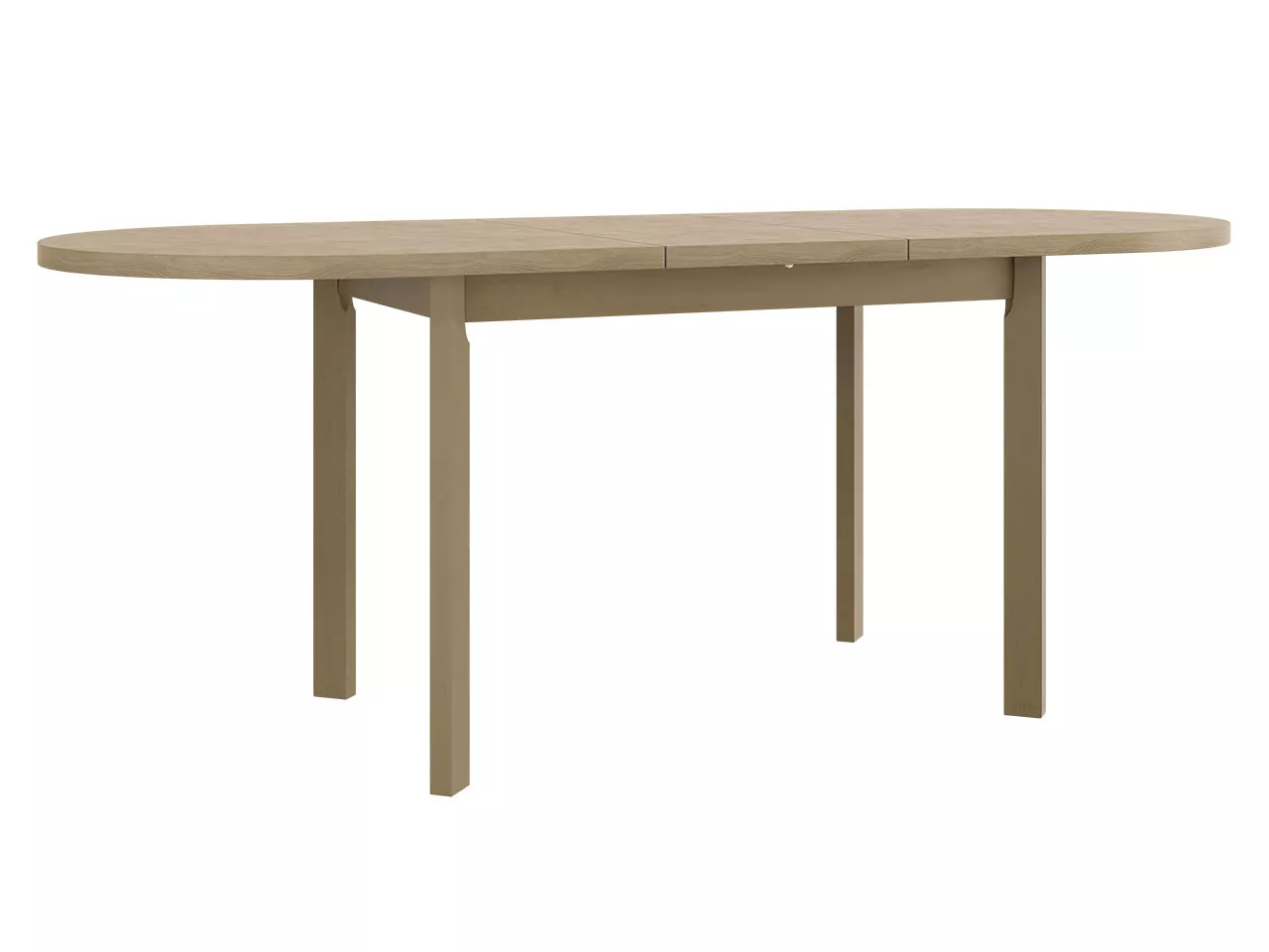 Rozkládací jídelní stůl BANGS je tradiční model s mírně zaoblenými hranami. Oválný tvar horní desky dodává stolu lehký vzhled. Standardní délka stolu je 160 cm, přičemž v rozloženém stavu délka činí 200 cm, což poskytuje místo k sezení až pro 7 osob.