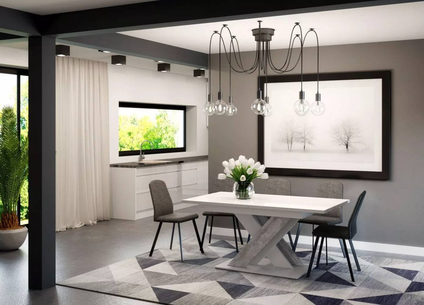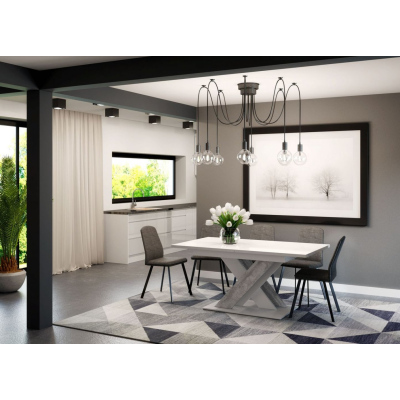 Rozkládací jídelní stůl PEPAX - bílá / kámen