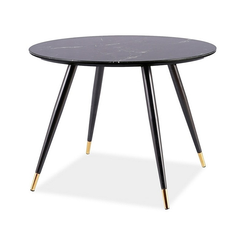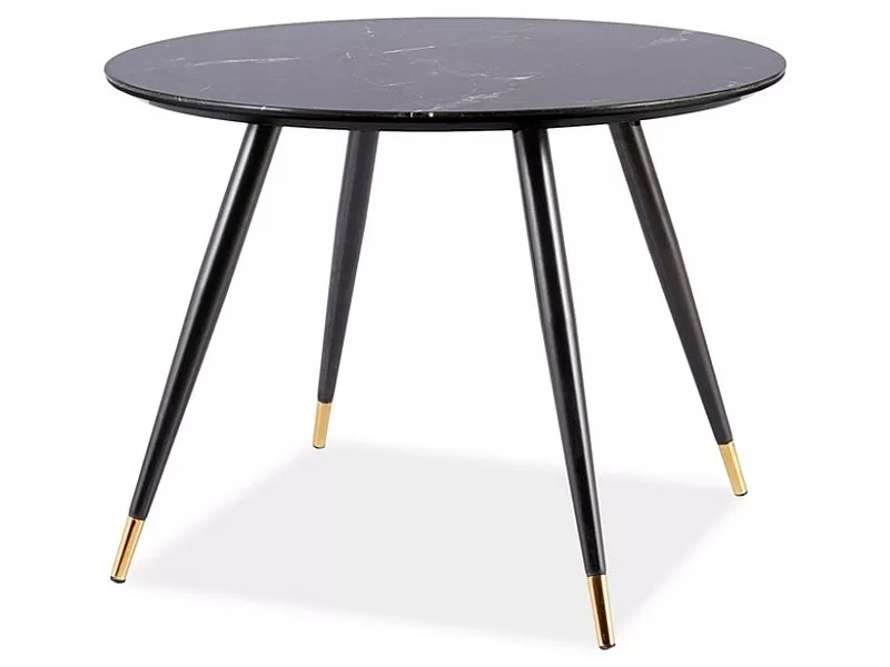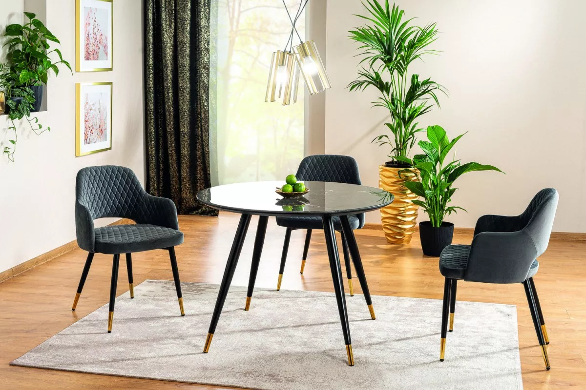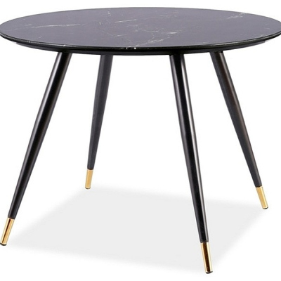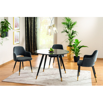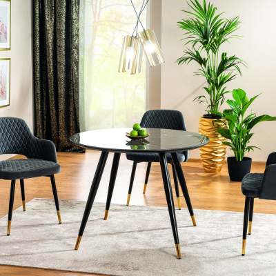 Kulatý jídelní stůl ELON - černý kámen / černý / zlatý