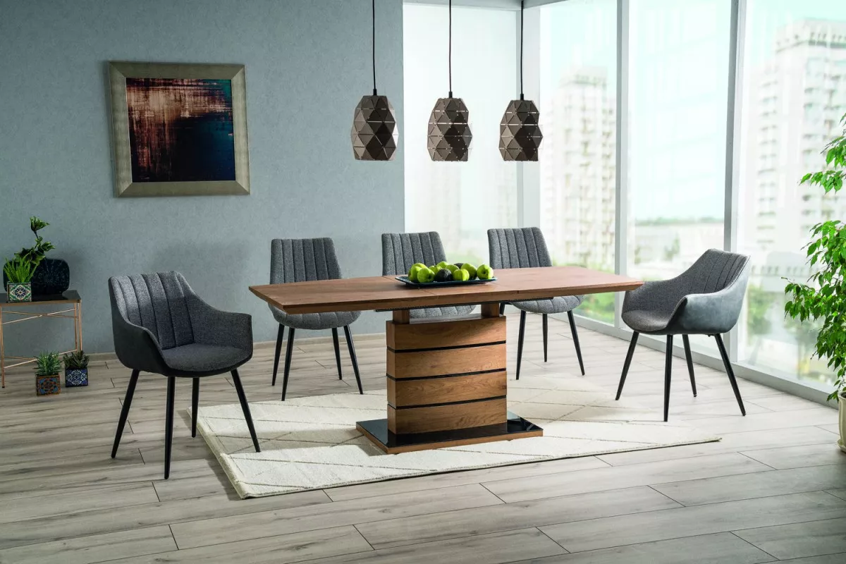 Rozkládací jídelní stůl WOLFGANG se hodí do všech moderních jídelem. Zaujme především stylovou podnoží.