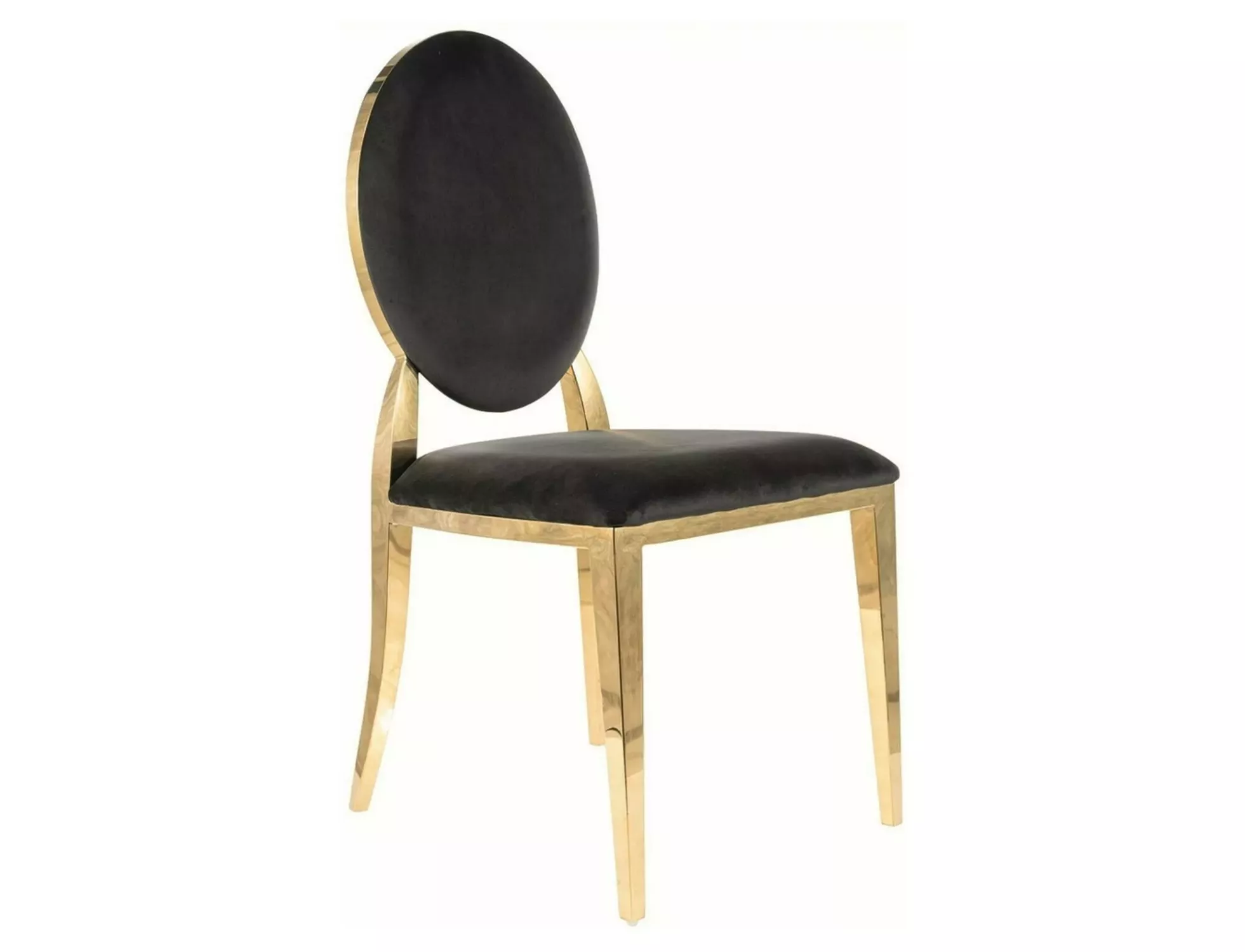 Stylová jídelní židle PIERRE se vyznačuje honosným a netradičním designem. Barokní styl podtrhují zlaté kovové nožky. Hodí se nejen do kuchyní, ale i do jednacích či společenských prostor.