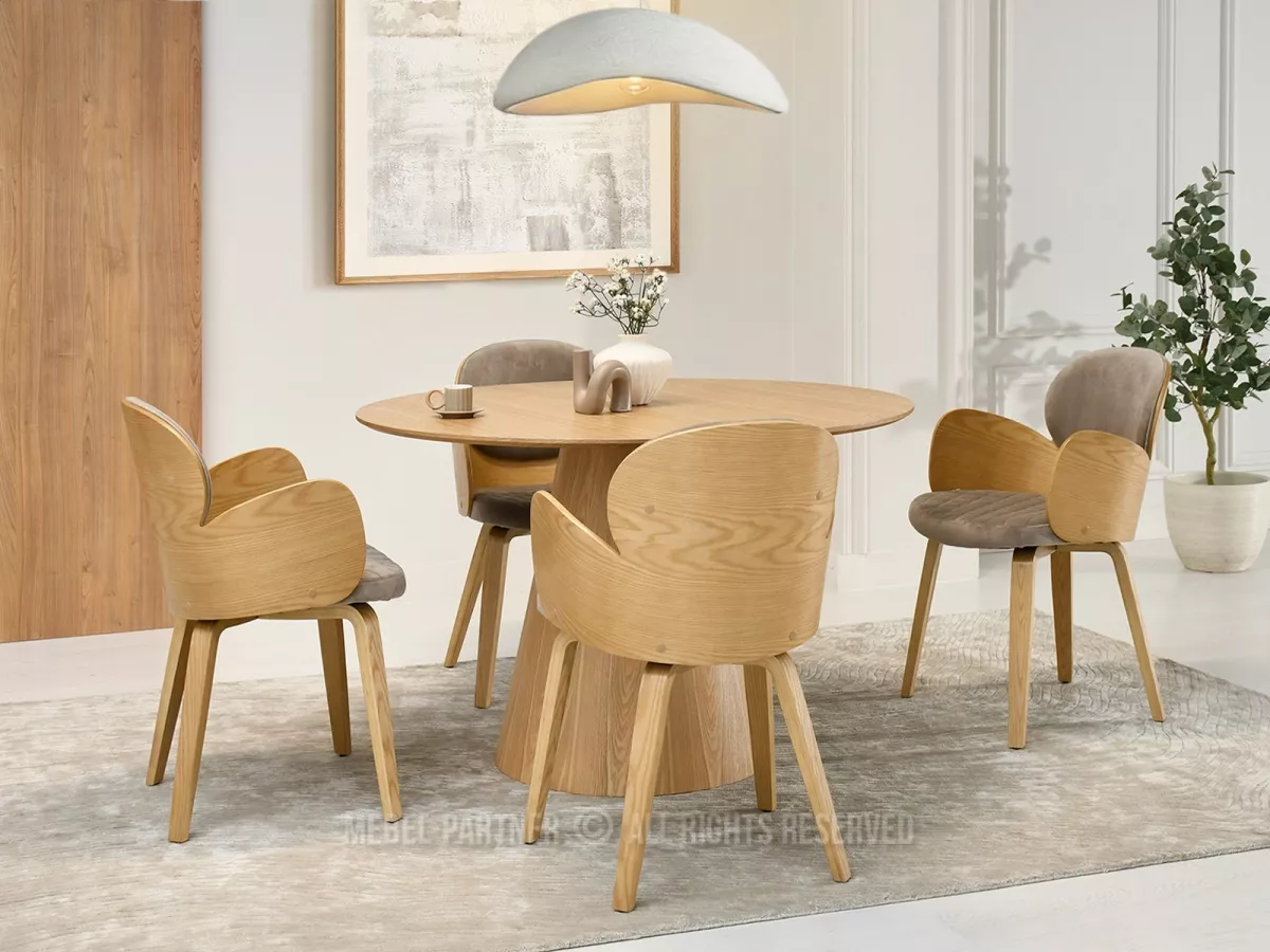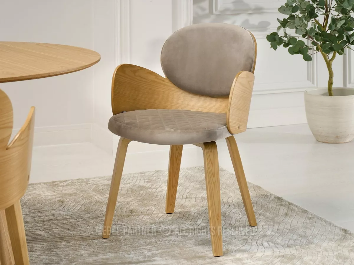 Designová jídelní židle RAWAN zaujme svým zpracováním z ohýbaného dřeva. Módní design podtrhuje celkové provedení židle.