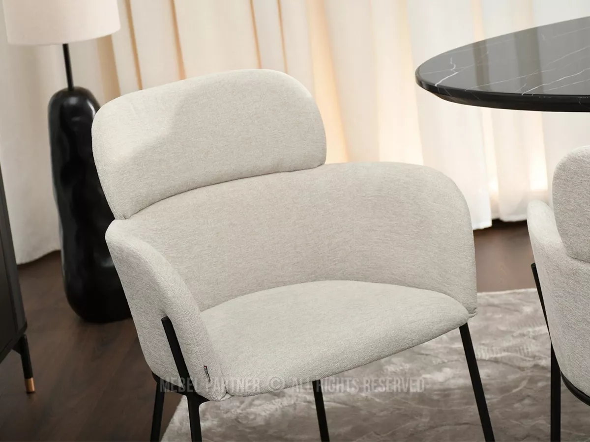 Čalouněná jídelní židle ELIZARA na první pohled zaujme originálním tvarem. Čalouněná židle je perfektním kouskem do vaší jídelny a kuchyně.