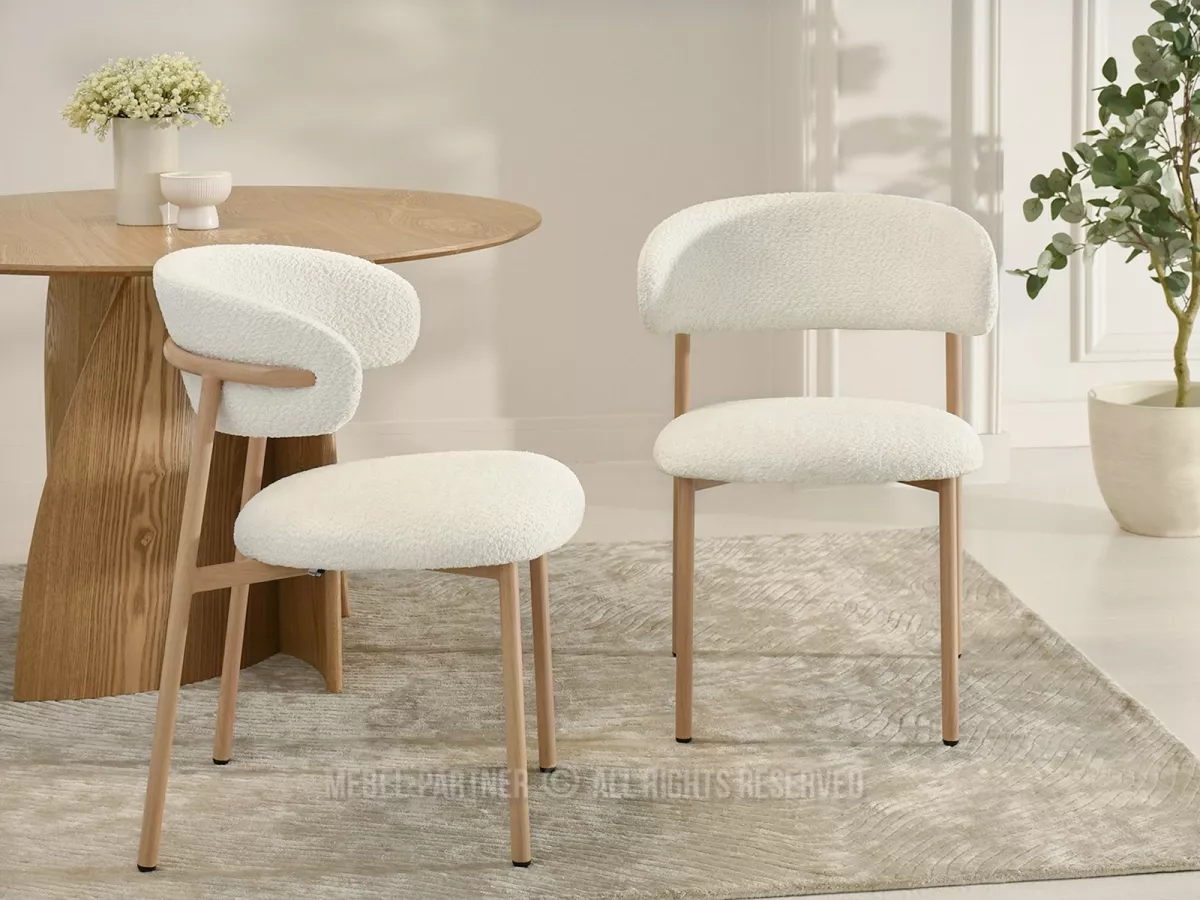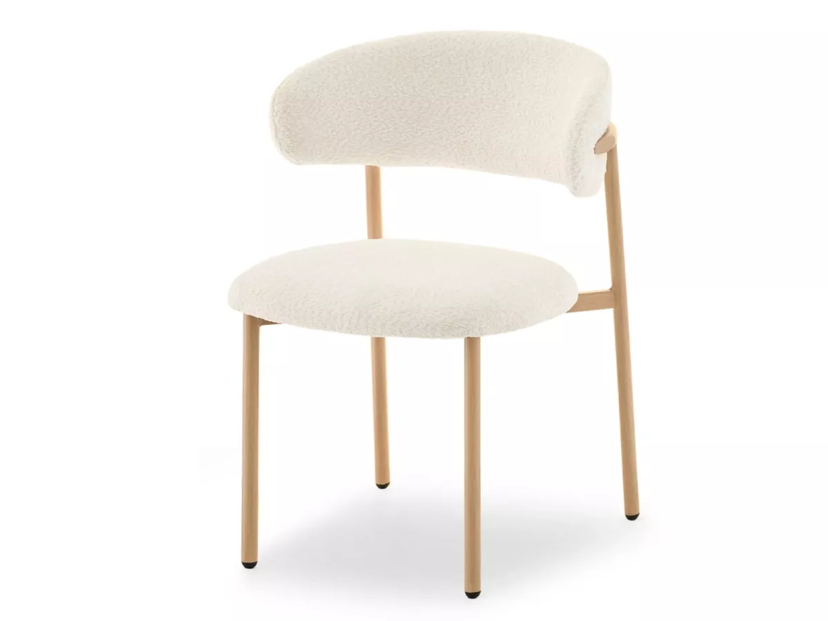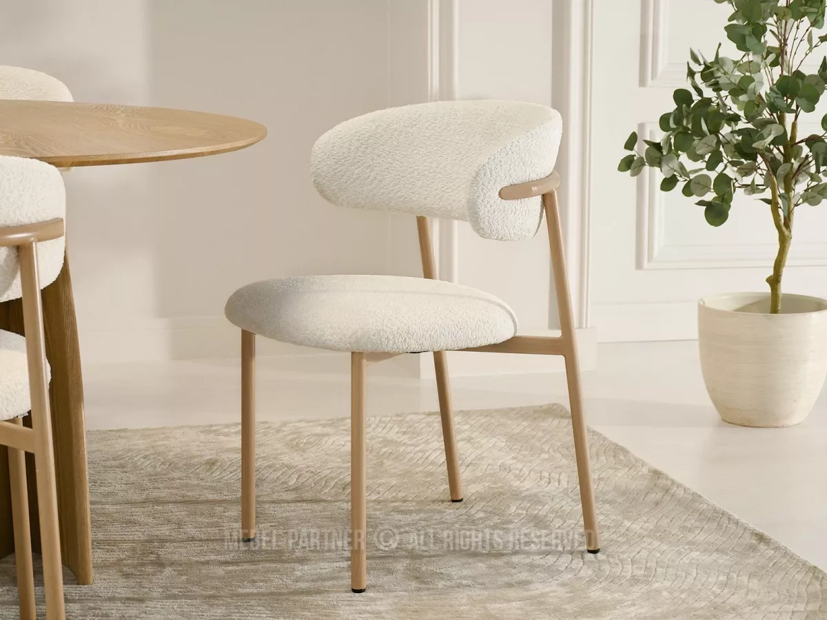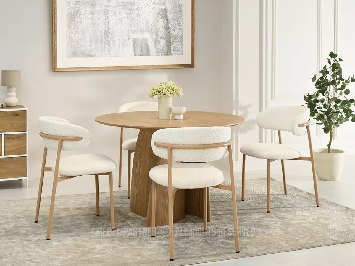 Jídelní židle ADRIENNE díky své jednoduchosti určuje univerzální a nadčasový charakter. Celek doplňuje velmi stabilní kovová základna s dekorem dubu.