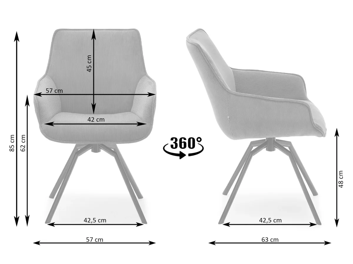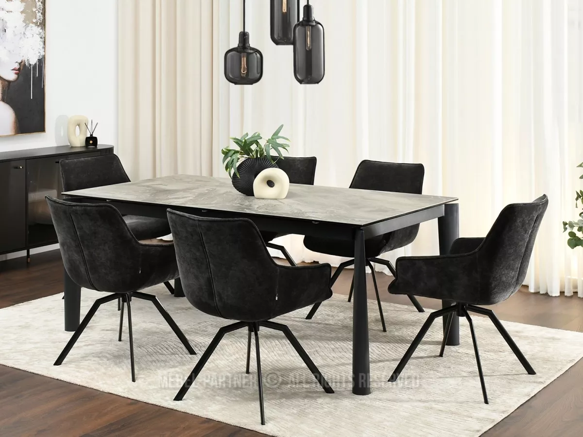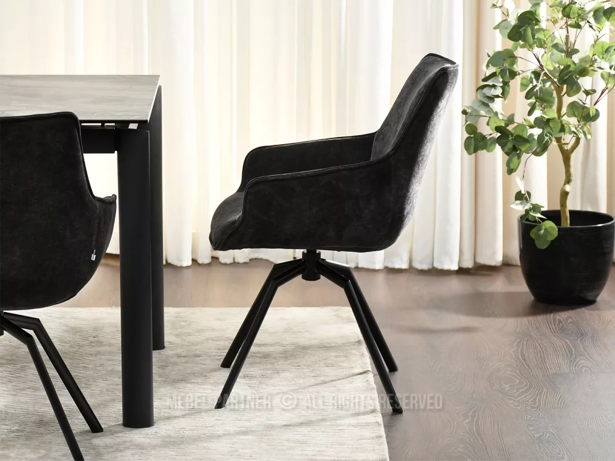 Otočná jídelní židle MILAGROS najde své místo v každém interiéru. Kovová podstava zaručuje celkovou stabilitu.