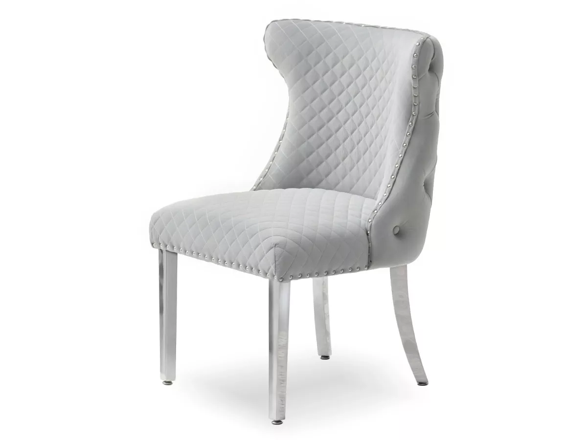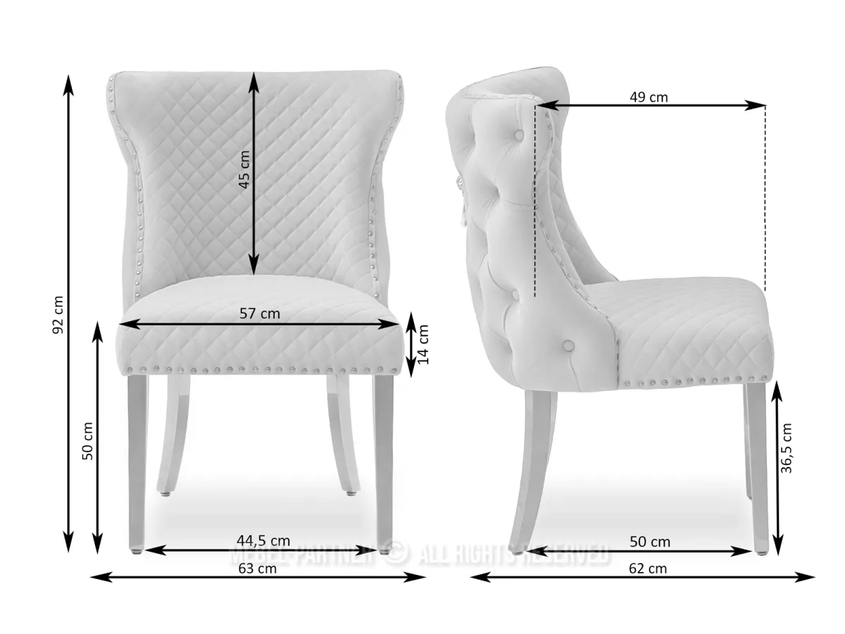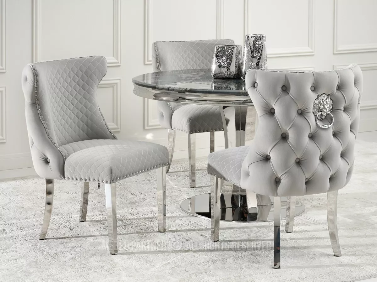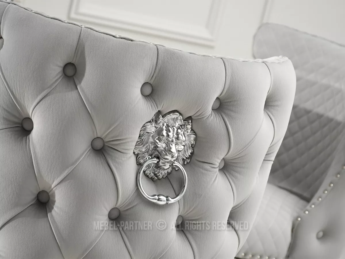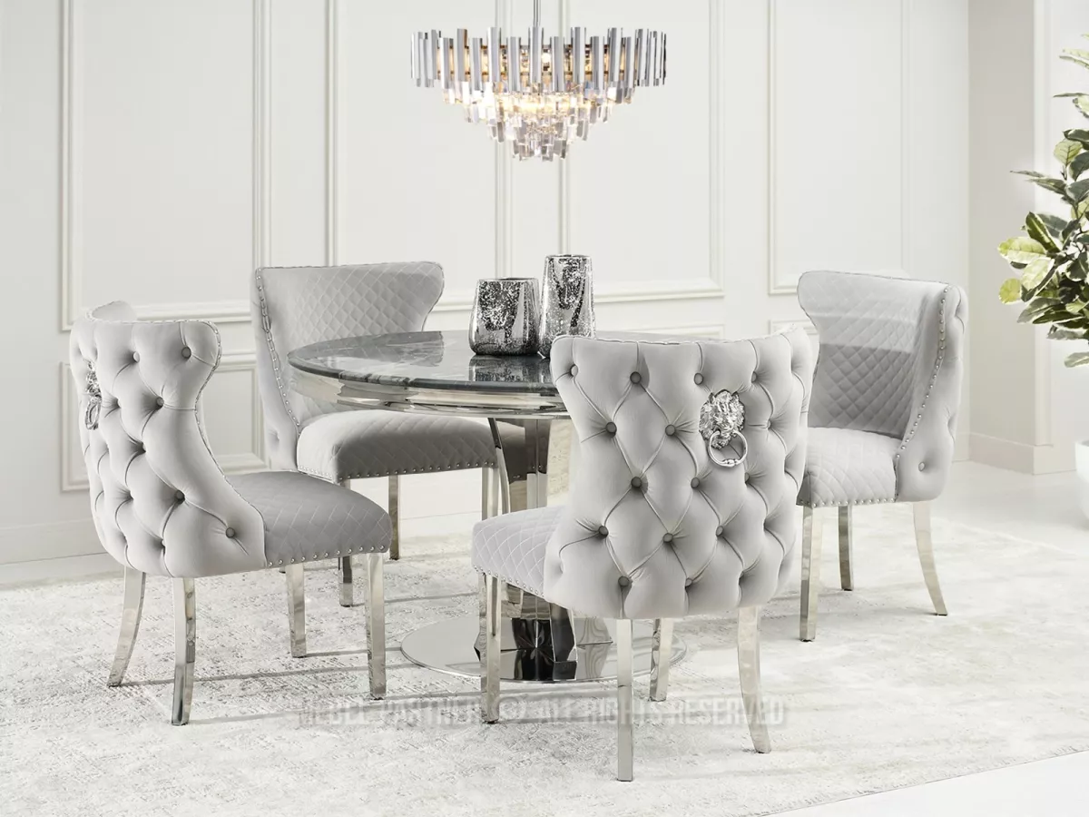 Luxusní jídelní židle KALISSA na první pohled zaujme svým elegantním opěrákem s prošíváním a klepadlem ve tvaru lva. Bude se skvěle vyjímat ve všech moderním a luxusních interiérech.