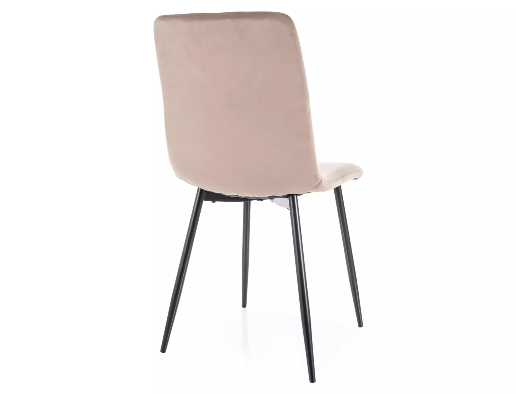 Jídelní židle DOMINICA je charakteristická svým prošívaným opěradlem. Je potažená hebkou látek, která je příjemná na dotek a zvyšuje komfort používání. Stabilitu židli dodávají kovové nohy.