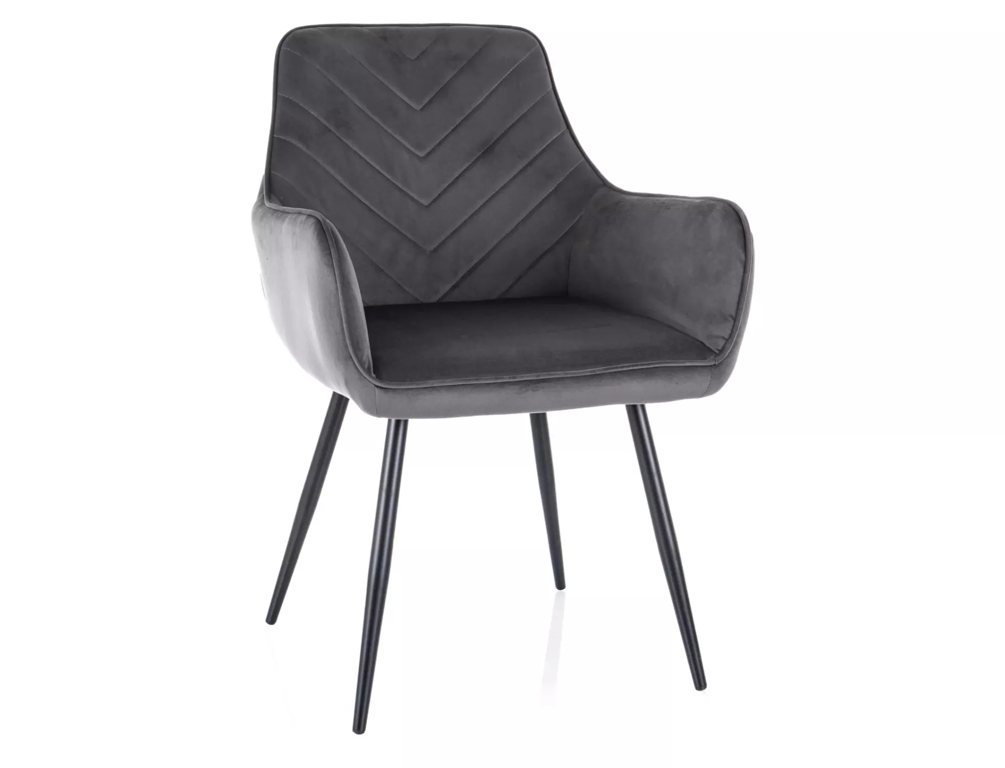 Čalouněná jídelní židle DORKAS zaujme hlavně svým prošívaným opěradlem. Pohodlné područky a pevné kovové nohy zvyšují komfort používání židle.