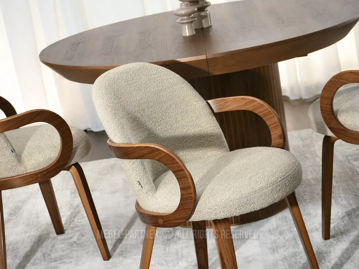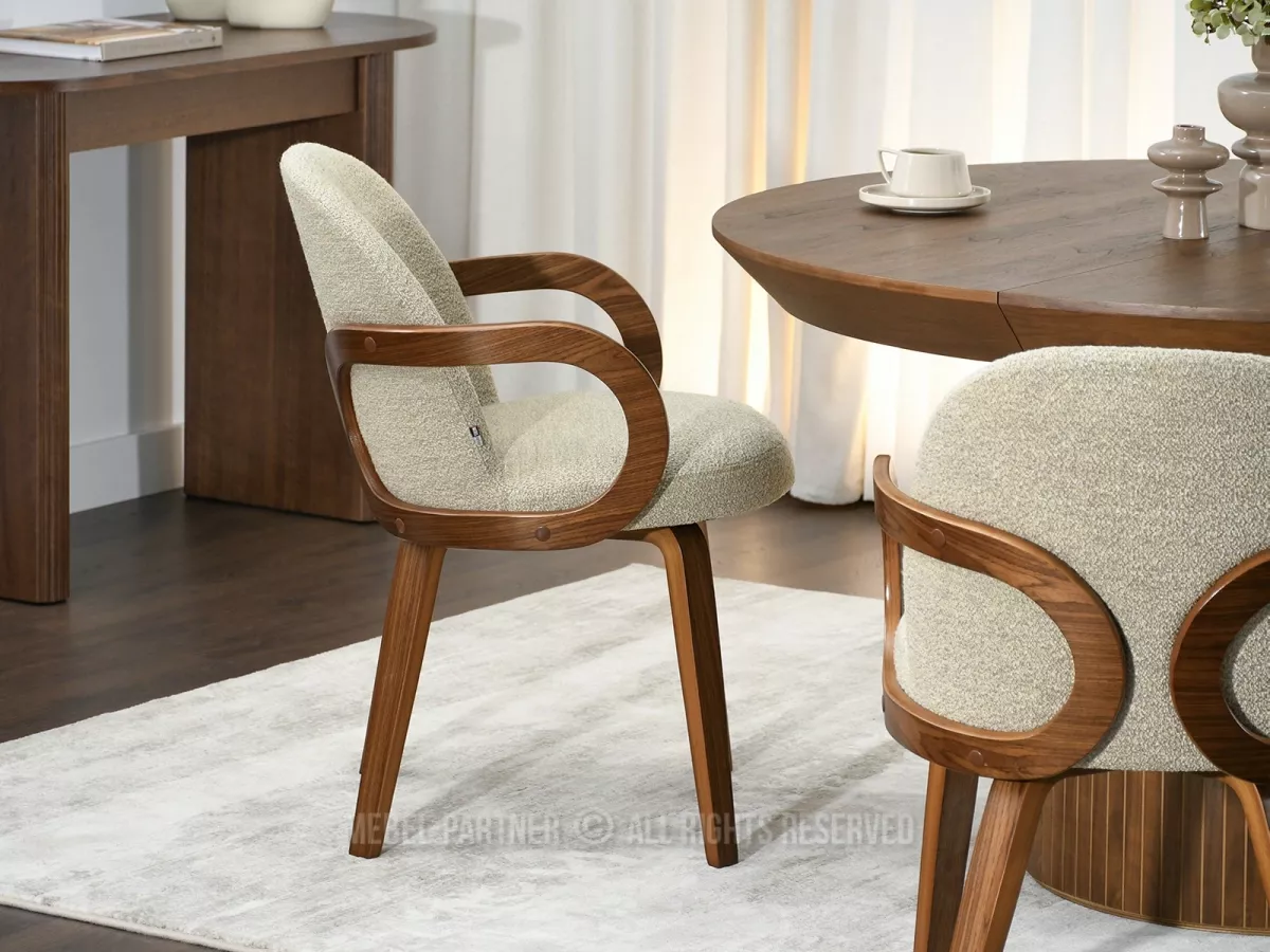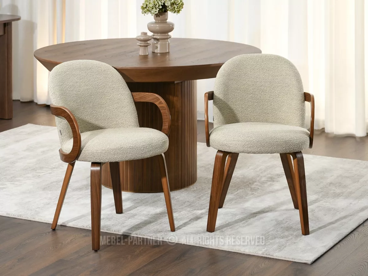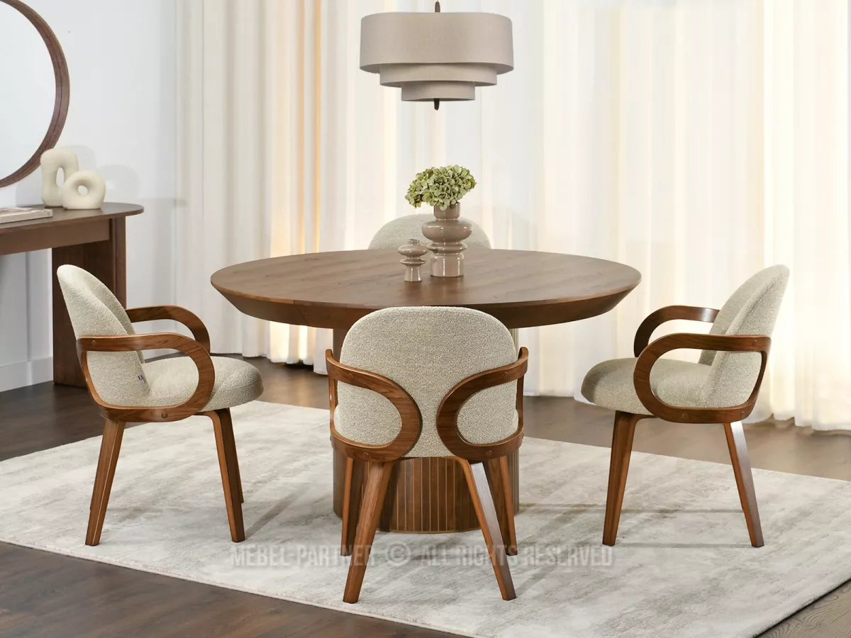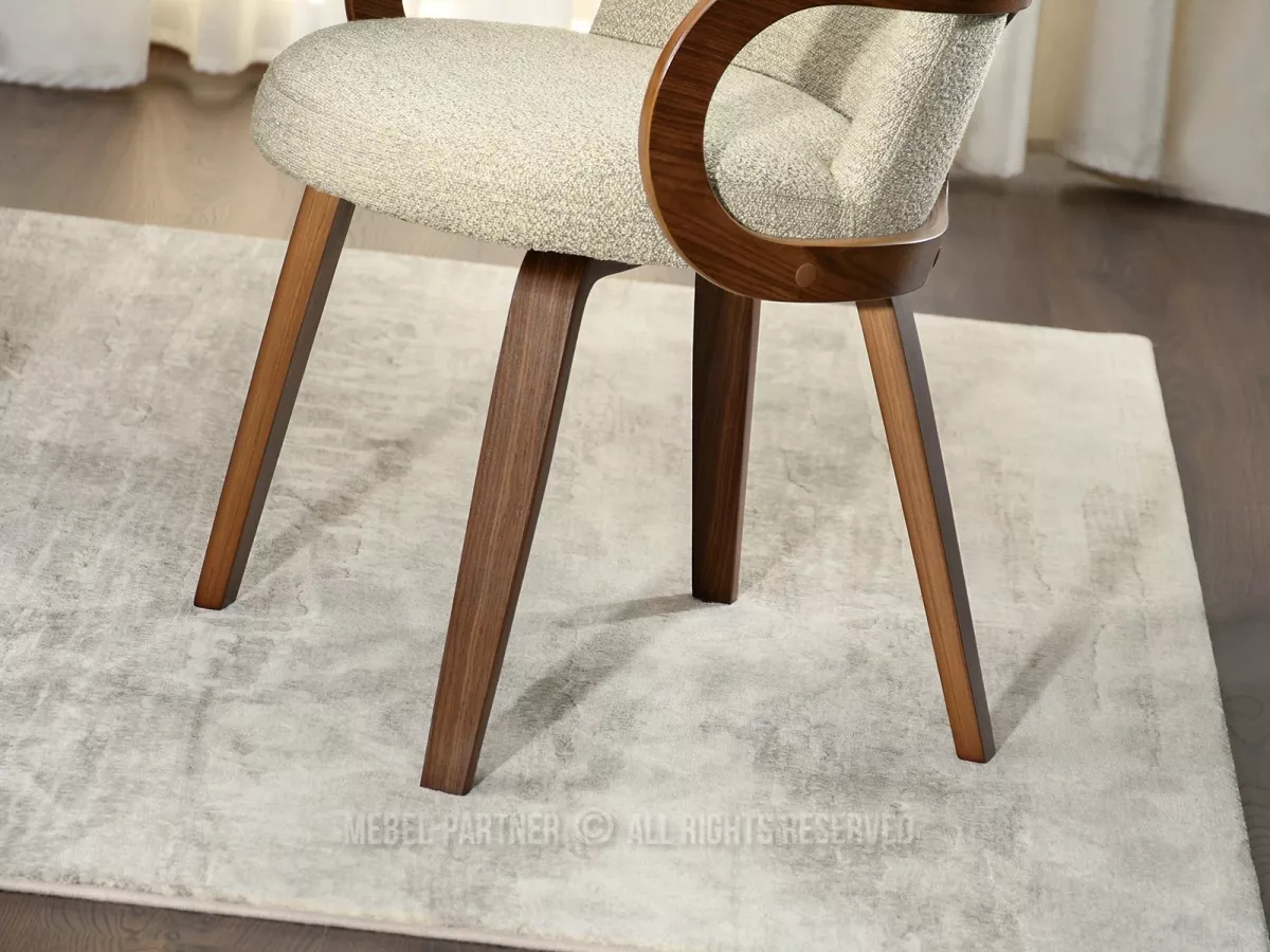 Čalouněná jídelní židle DAISY svým dekorem ořechu vnese do každé místnosti nádech přírody a elegance. Celkový design podtrhuje masivní podstava, která židli dodává stabilitu.