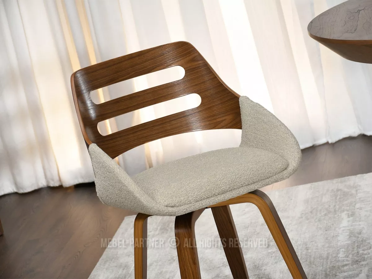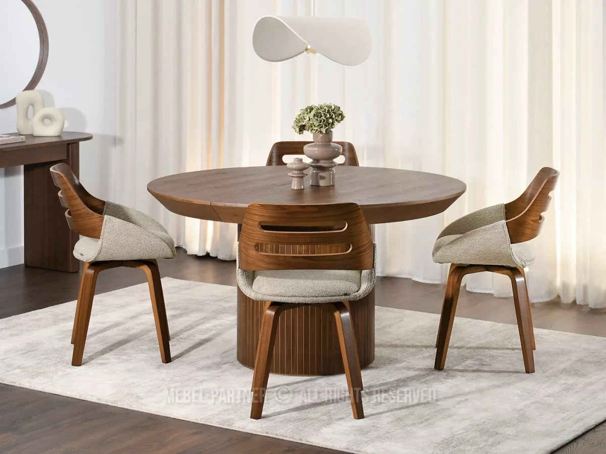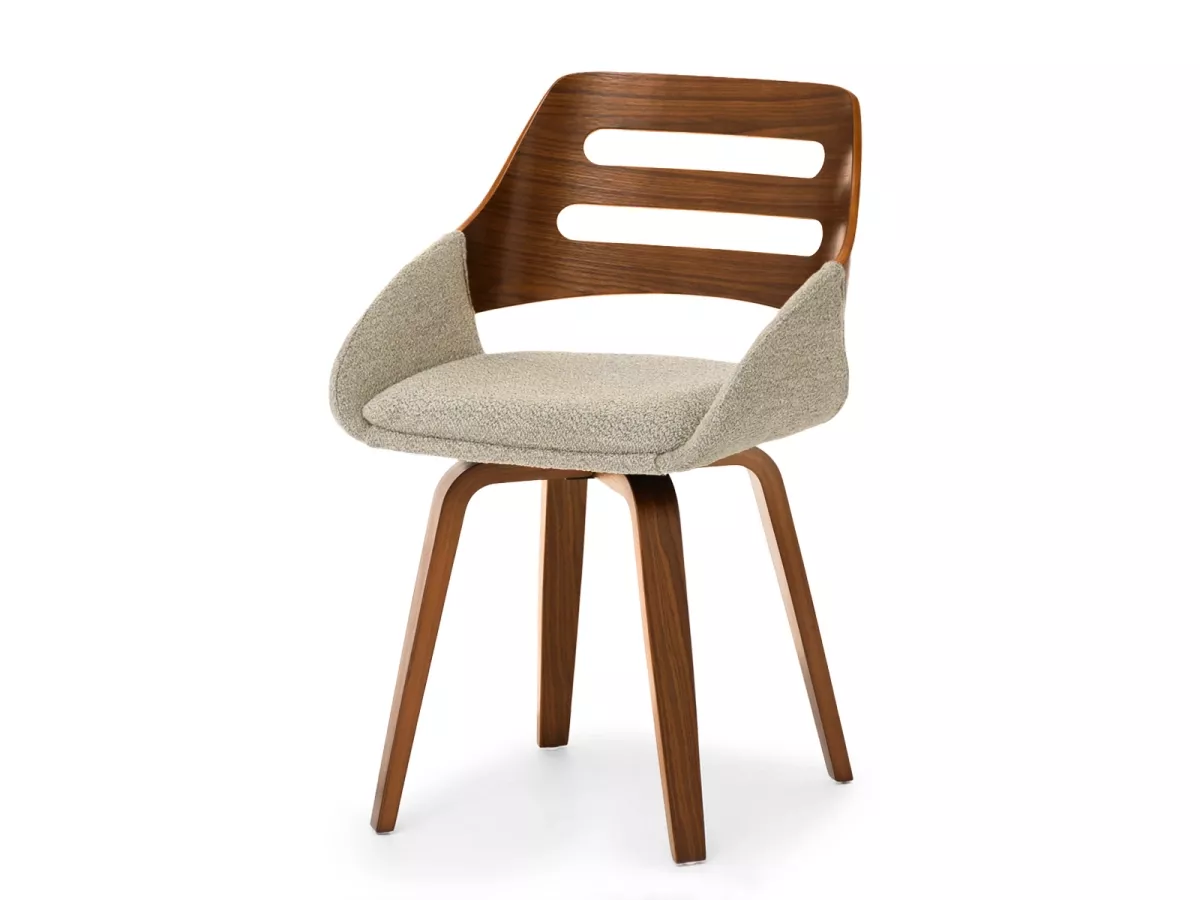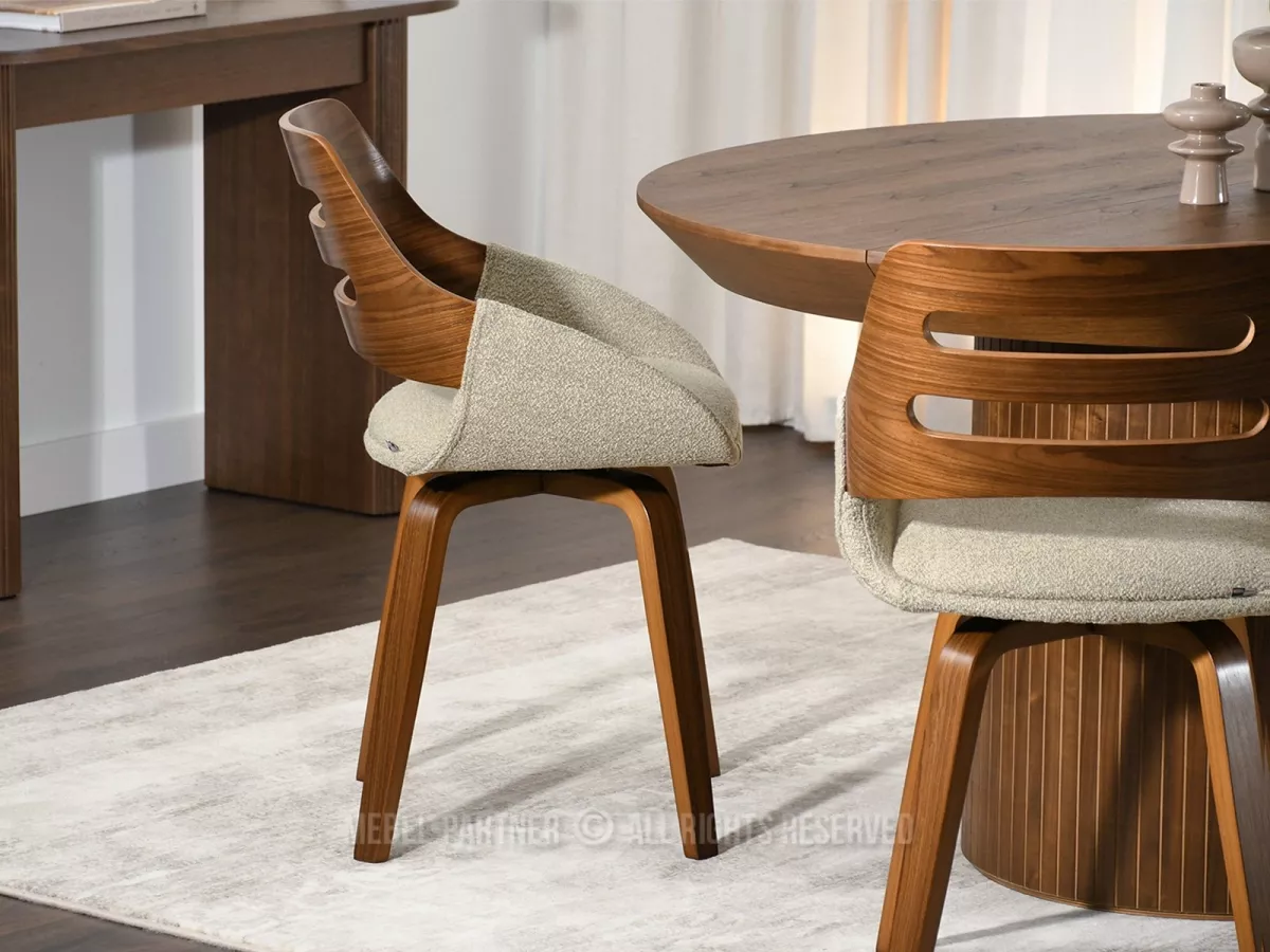 Jídelní židle JIHAN dodává eleganci i přirozený půvab každému interiéru. Čtyřnohá otočná podstava z masivu zajišťuje stabilní oporu.