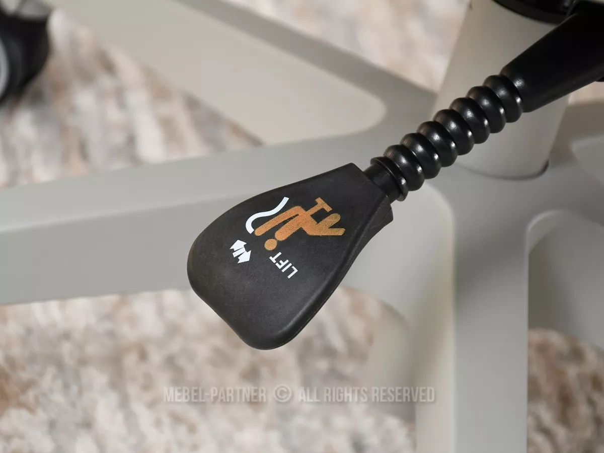 Kancelářská židle BERNADINA nabízí pohodlí v podobě nastavitelných loketních opěrek, bederní opěrky a opěrky hlavy. Konstrukce židle má nastavitelnou výšku.