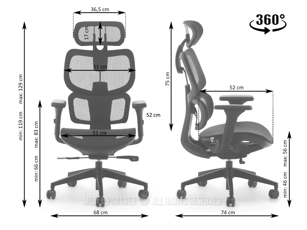 Kancelářská židle NOLA se hodí do všech studentských pokojů nebo kanceláří. Konstrukce židle má nastavitelné područky, hlavovou opěrku a výšku.