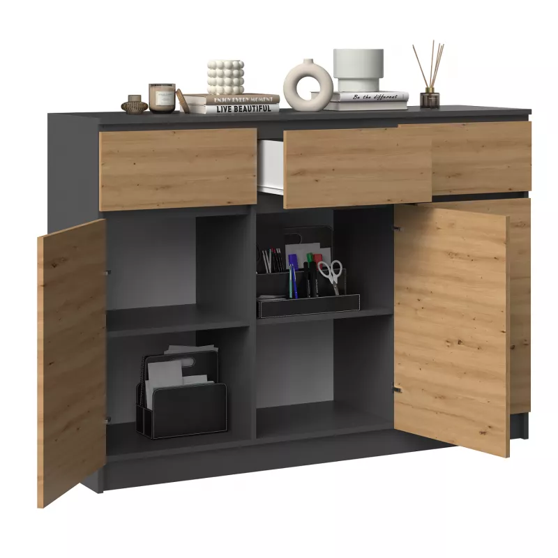 Široká kombinovaná komoda ELBE - dub artisan / antracitová