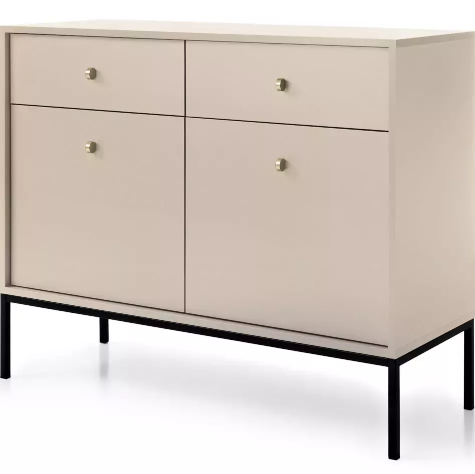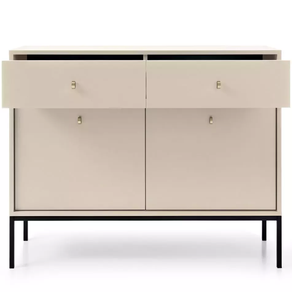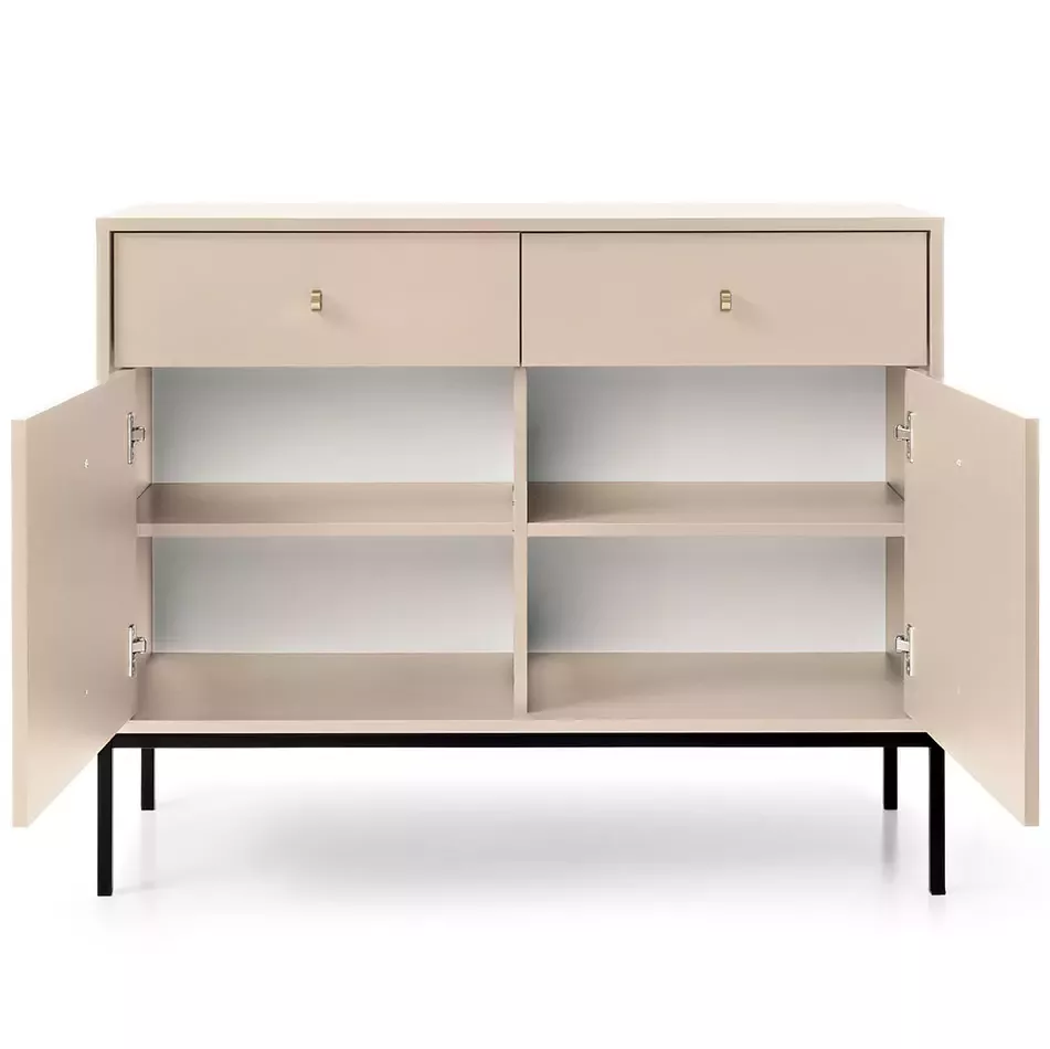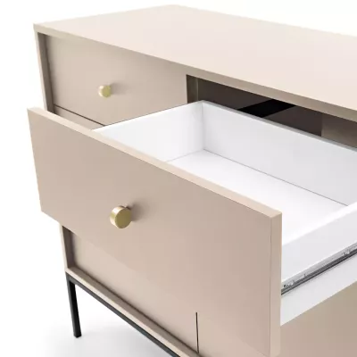 Kombinovaná komoda ORFEA je ideálním řešením pro obývací pokoje nebo jídelny. Poskytuje optimální množství úložného prostoru pro vaše oblíbené předměty a dekorace. Skládá se ze 2 polic a 2 šuplíků. Kovové úchyty ve zlaté barvě zdůrazní eleganci a výjimečnost této komody.