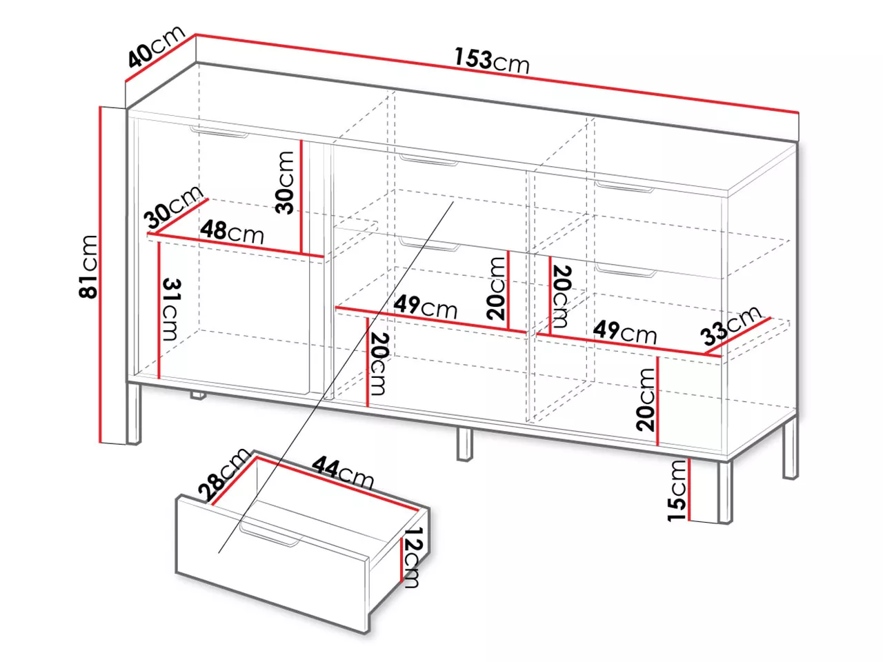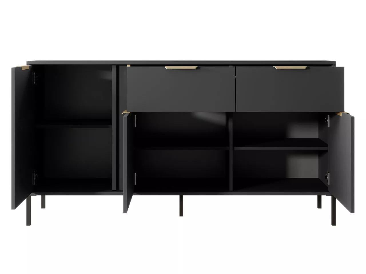 Kombinovaná komoda NUCOR 2 je navržena s maximální pečlivostí a s důrazem na ty nejmenší detaily. Je vybavena 2 prostornými zásuvkami a uzavřenými skříňkami. Tmavá barva dodává interiéru modernost i klasiku, zlaté detaily zdobící komodu dodávají rafinovaný důraz.