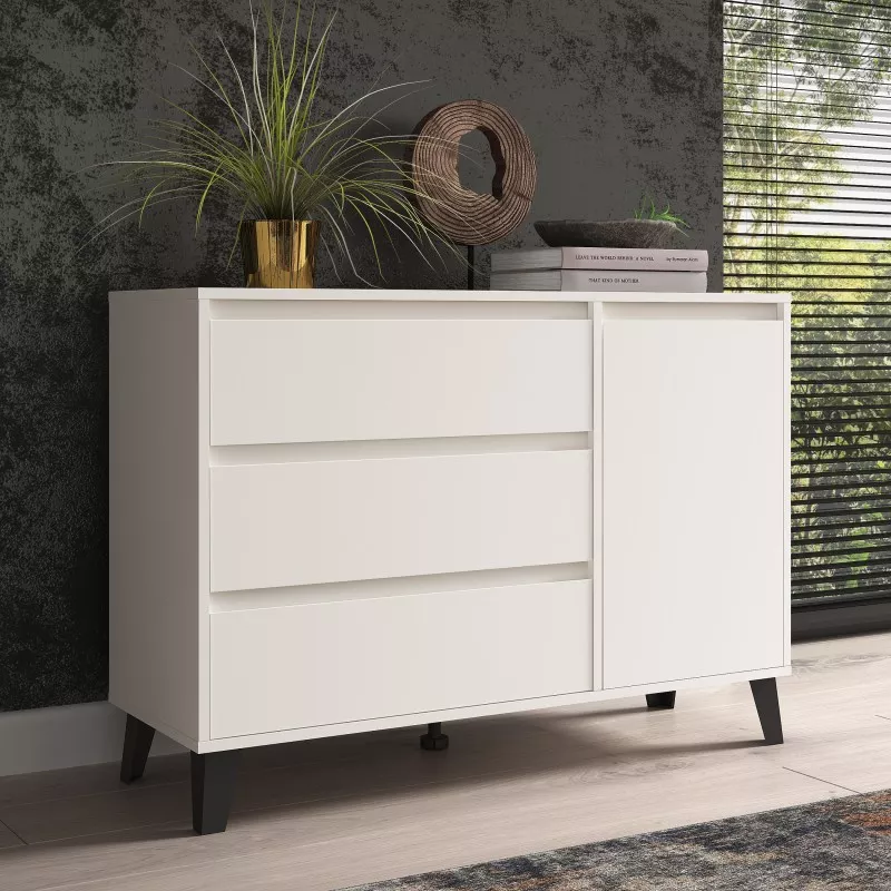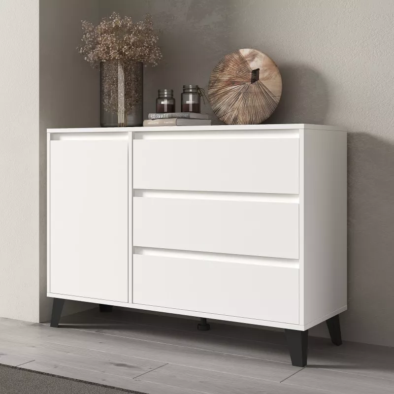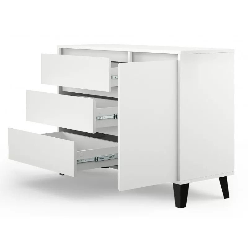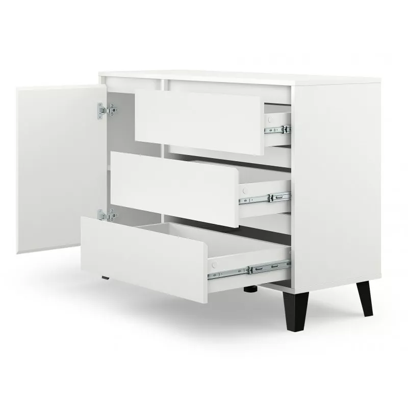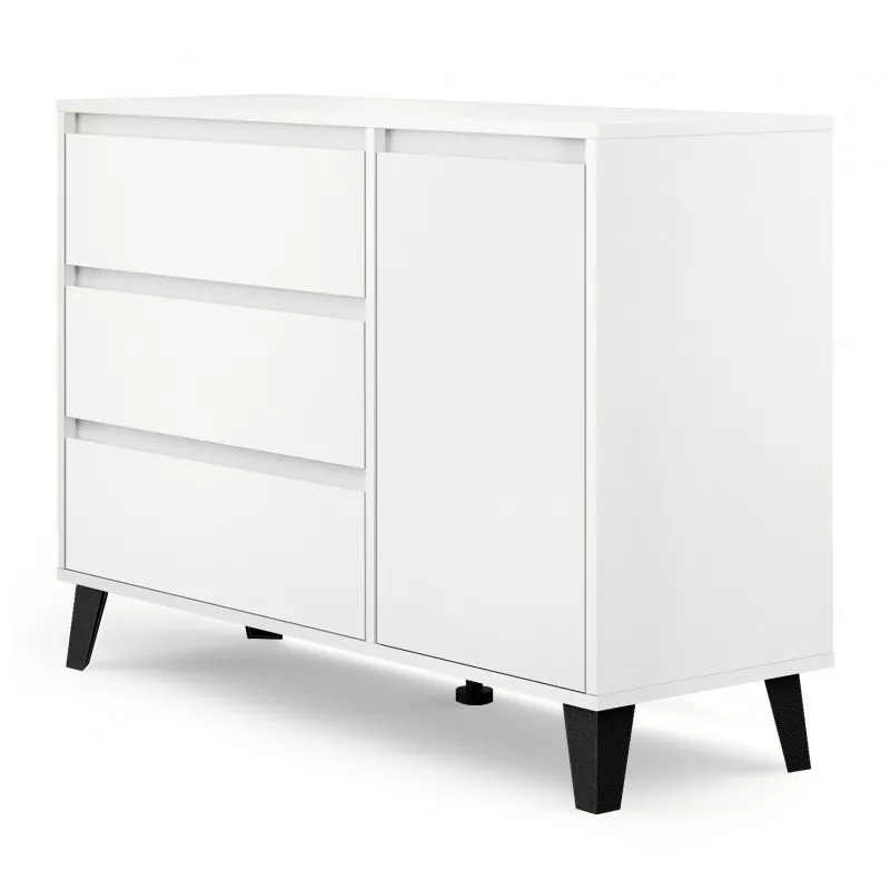 Kombinovaná komoda SITIVE je stvořená pro milovníky skandinávského stylu. Komoda je vybavena 3 prostornými zásuvkami a uzavřenou skříňkou se 2 policemi. Nespornou výhodou komody je možnost montáže zásuvek a skříňky dle vašich preferencí a potřeb.