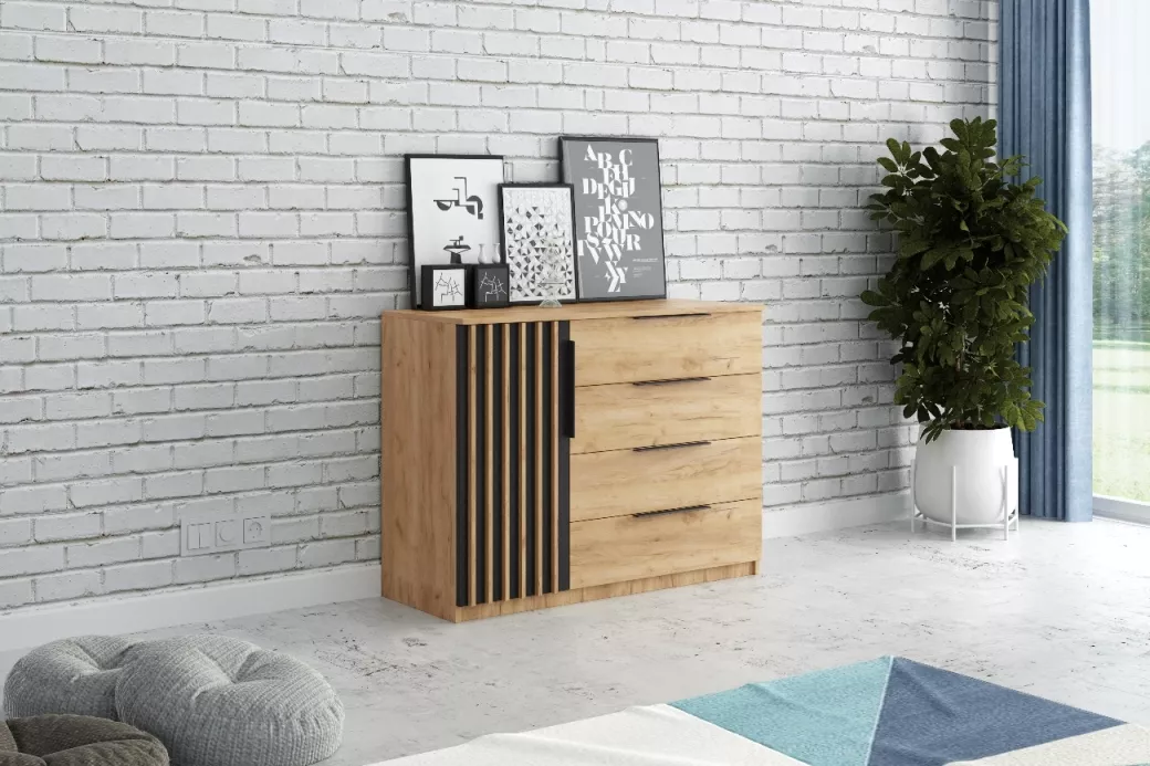 Kombinovaná komoda ORYNA II - dub craft zlatý / černá