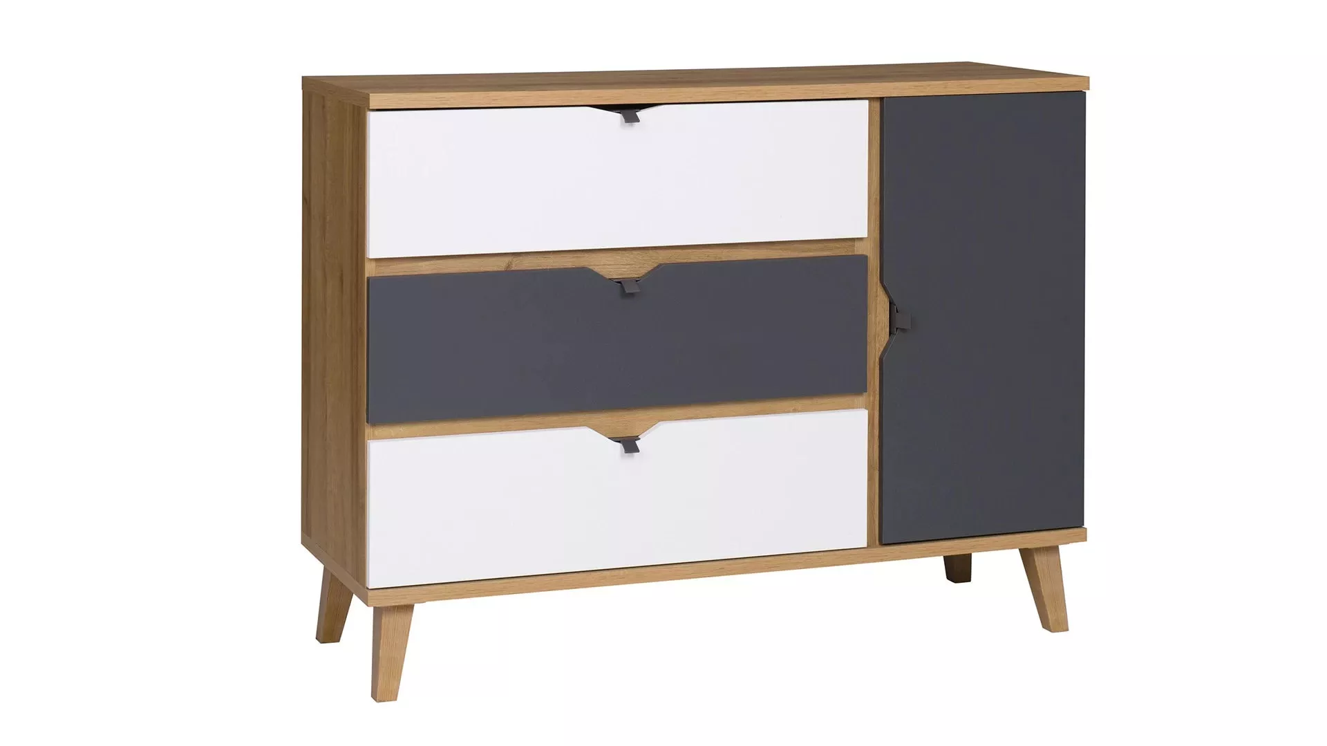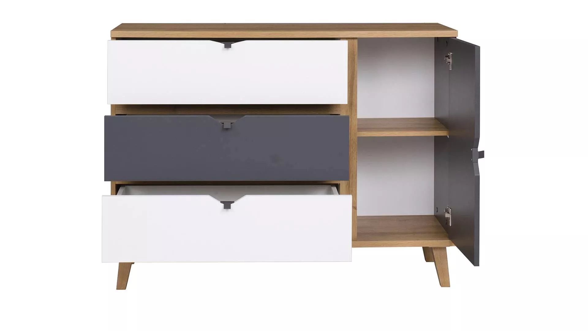 Kombinovaná komoda LARNAKA - dub zlatý / bílá / grafit