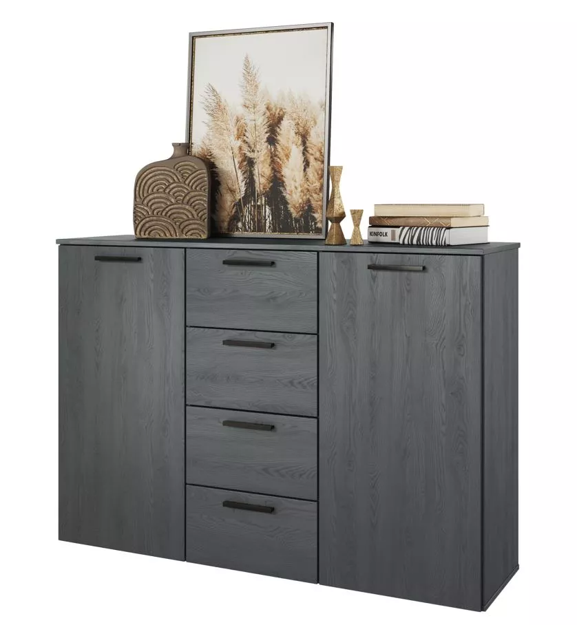 Komoda s dvířky a šuplíky CROSBY - dub carbon