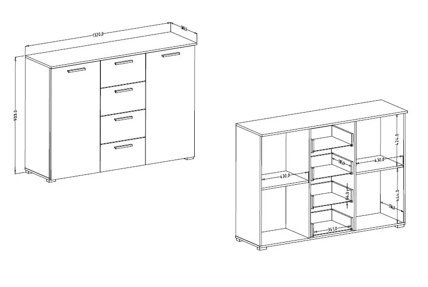 - Se šuplíky a dvířky