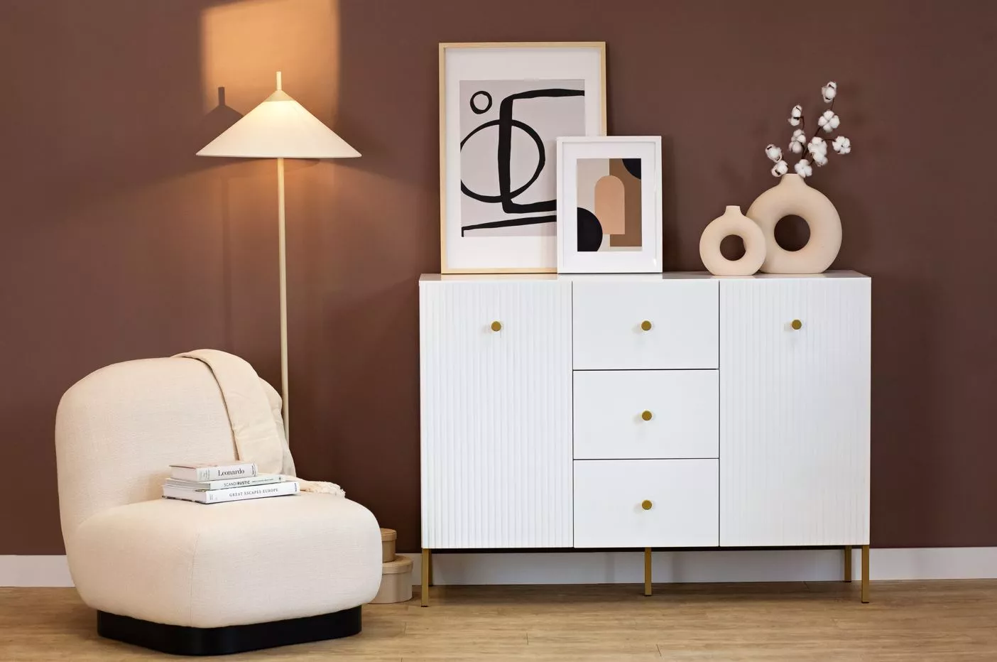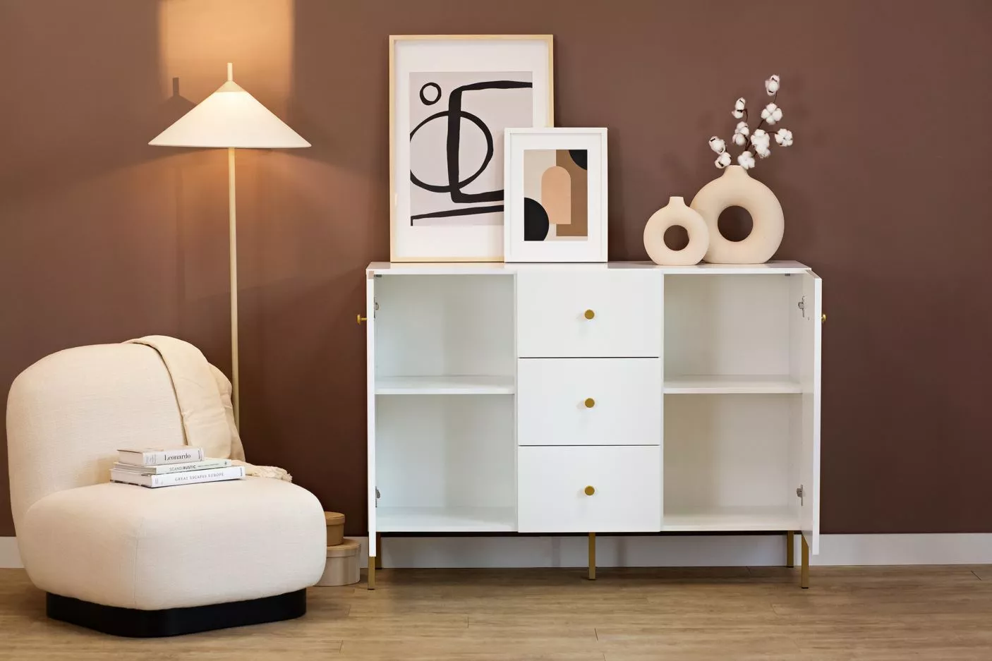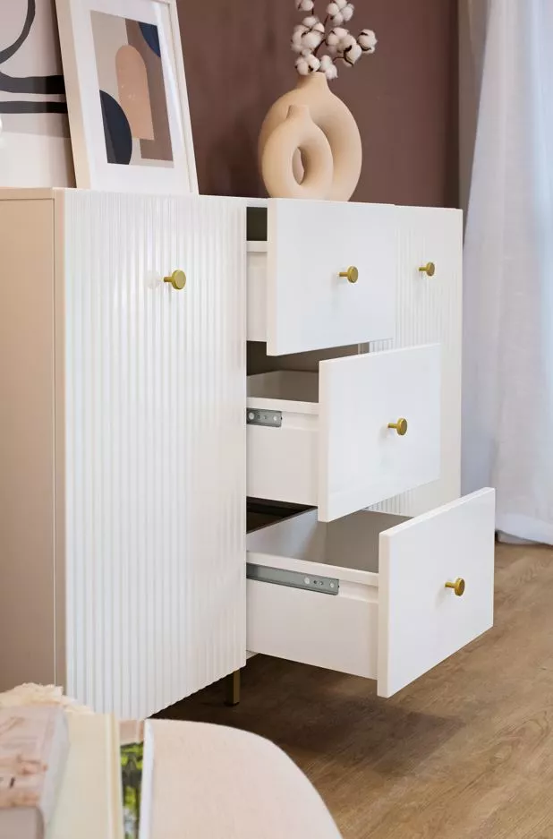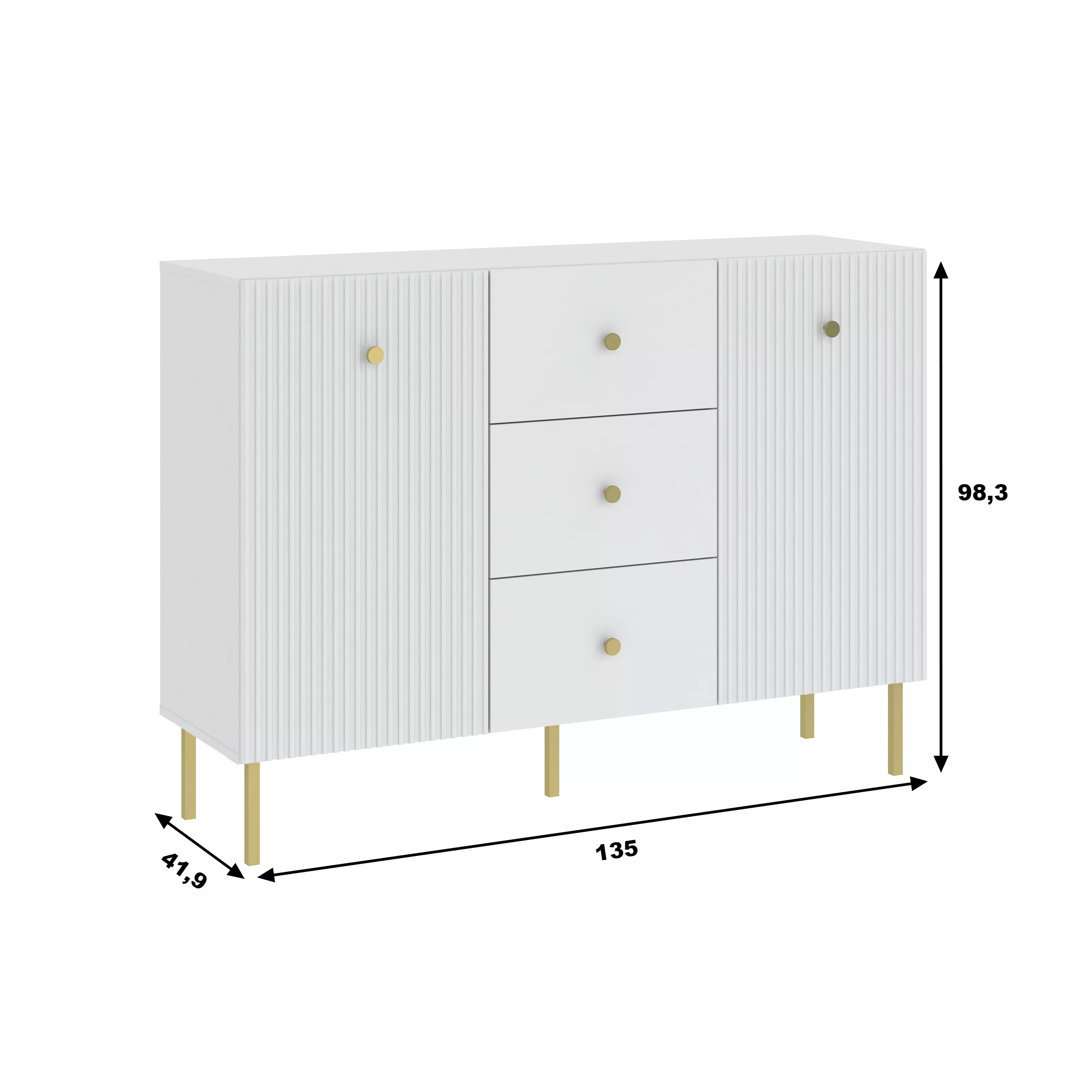 Široká kombinovaná komoda HASKEL 1 - bílá + zlatá