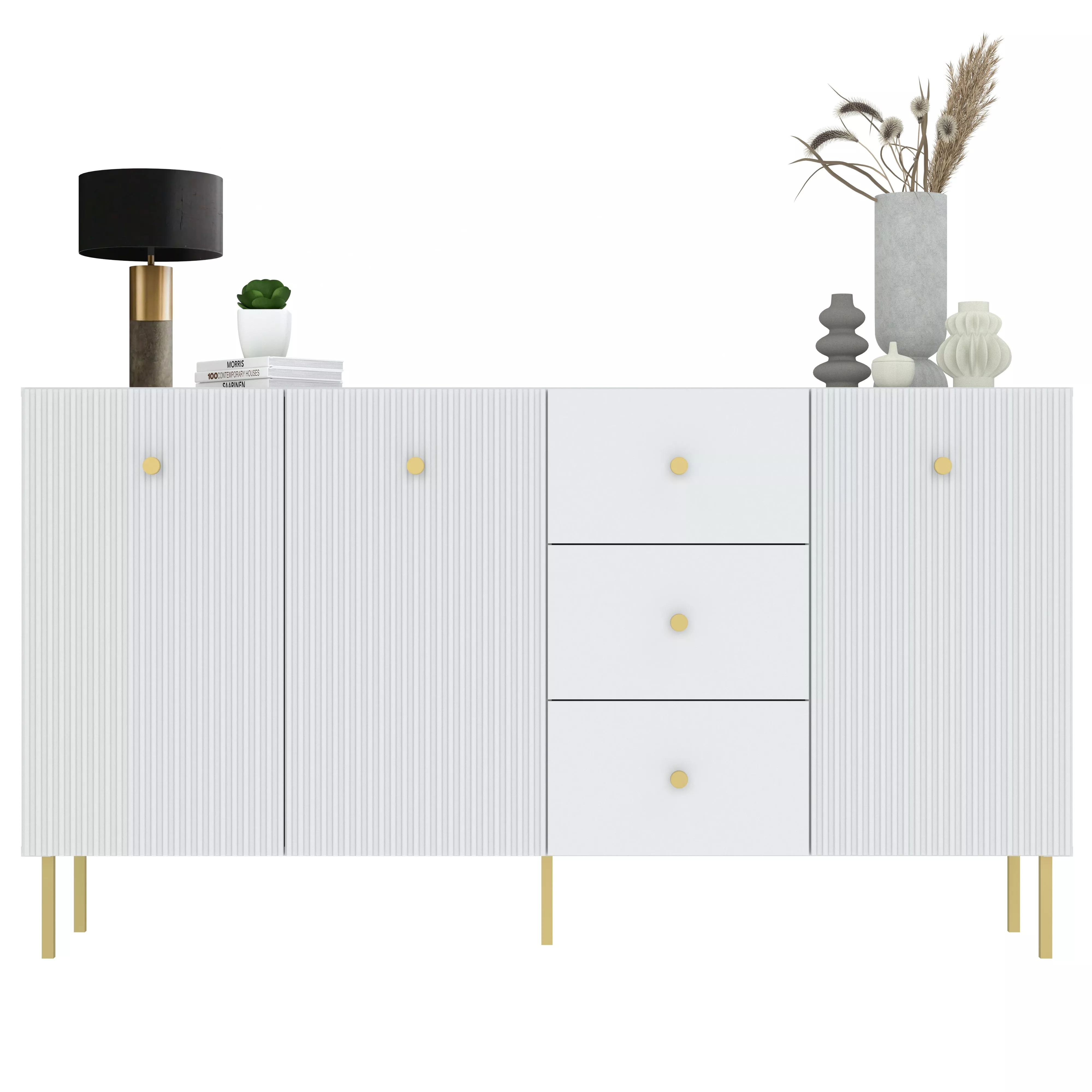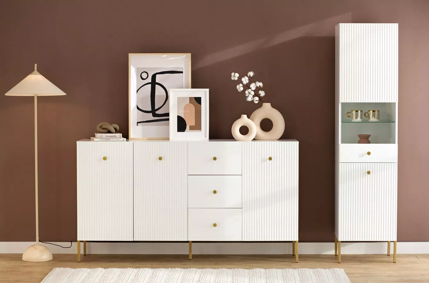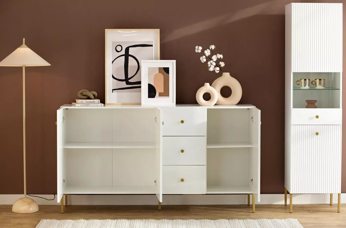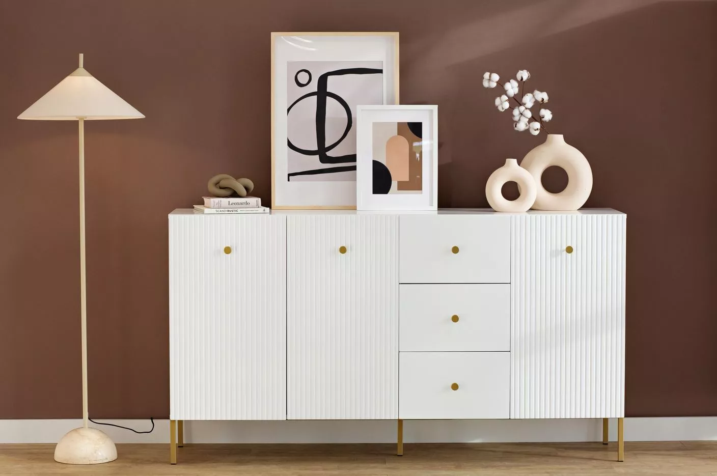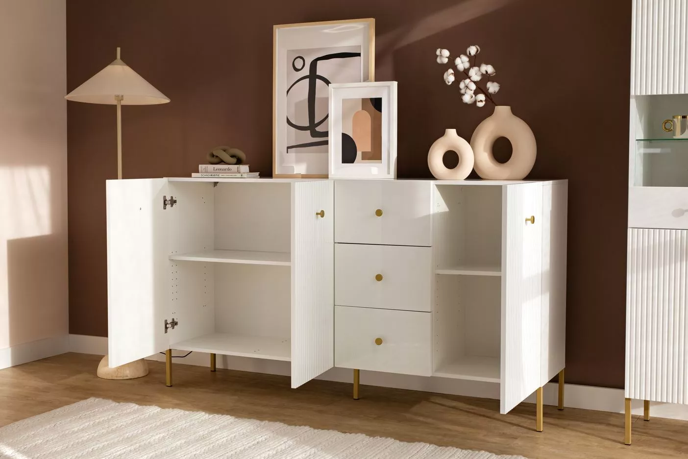 Kombinovaná široká komoda HASKEL 2 - bílá + zlatá